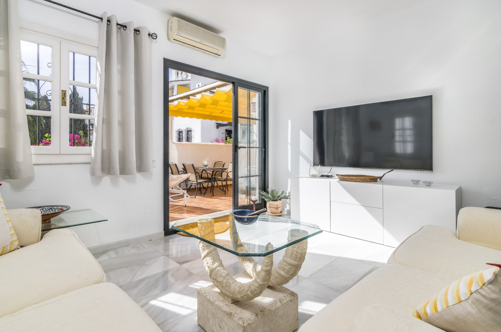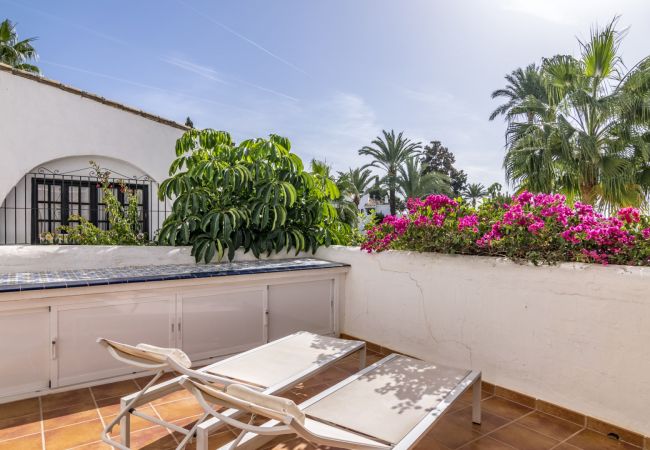 Appartement de 2 chambres à louer pour les vacances, situé dans la communauté fermée d'Aloha Gardens, sécurisée 24 heures sur 24. La communauté dispose de magnifiques jardins communs et de 3 piscines, dont l'une est chauffée. L'appartement est entièrement rénové et comprend une cuisine moderne, deux chambres de bonne taille, une salle de bains avec hydromassage et un salon confortable avec accès à la terrasse. Superbe appartement dans un excellent emplacement. La propriété dispose de chaînes de télévision espagnoles et d'un système Apple TV qui permet d'utiliser Netflix.