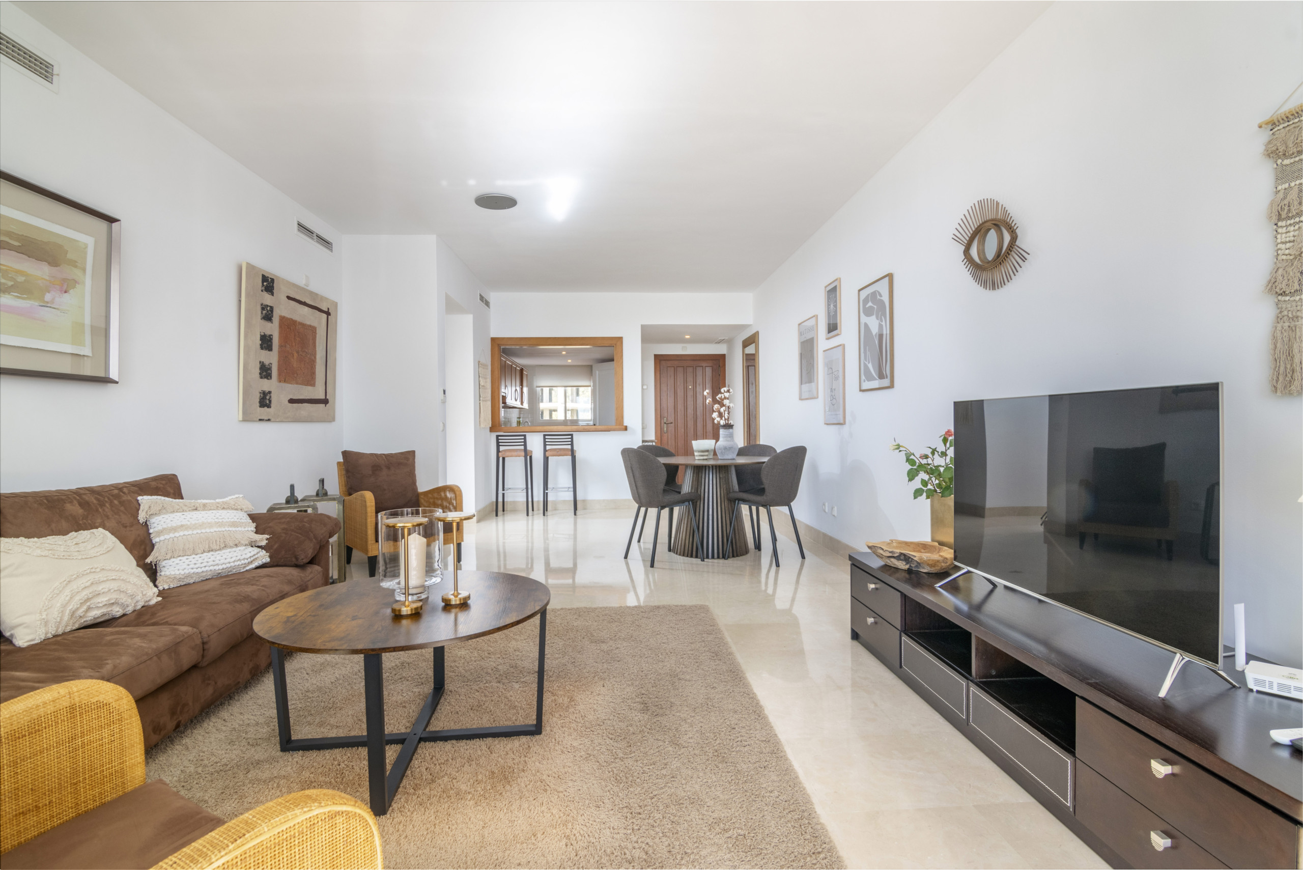 Appartement de 2 chambres à louer pour les vacances, situé dans la communauté fermée d'Aloha Gardens, sécurisée 24 heures sur 24. La communauté dispose de magnifiques jardins communs et de 3 piscines, dont l'une est chauffée. L'appartement est entièrement rénové et comprend une cuisine moderne, deux chambres de bonne taille, une salle de bains avec hydromassage et un salon confortable avec accès à la terrasse. Superbe appartement dans un excellent emplacement. La propriété dispose de chaînes de télévision espagnoles et d'un système Apple TV qui permet d'utiliser Netflix.