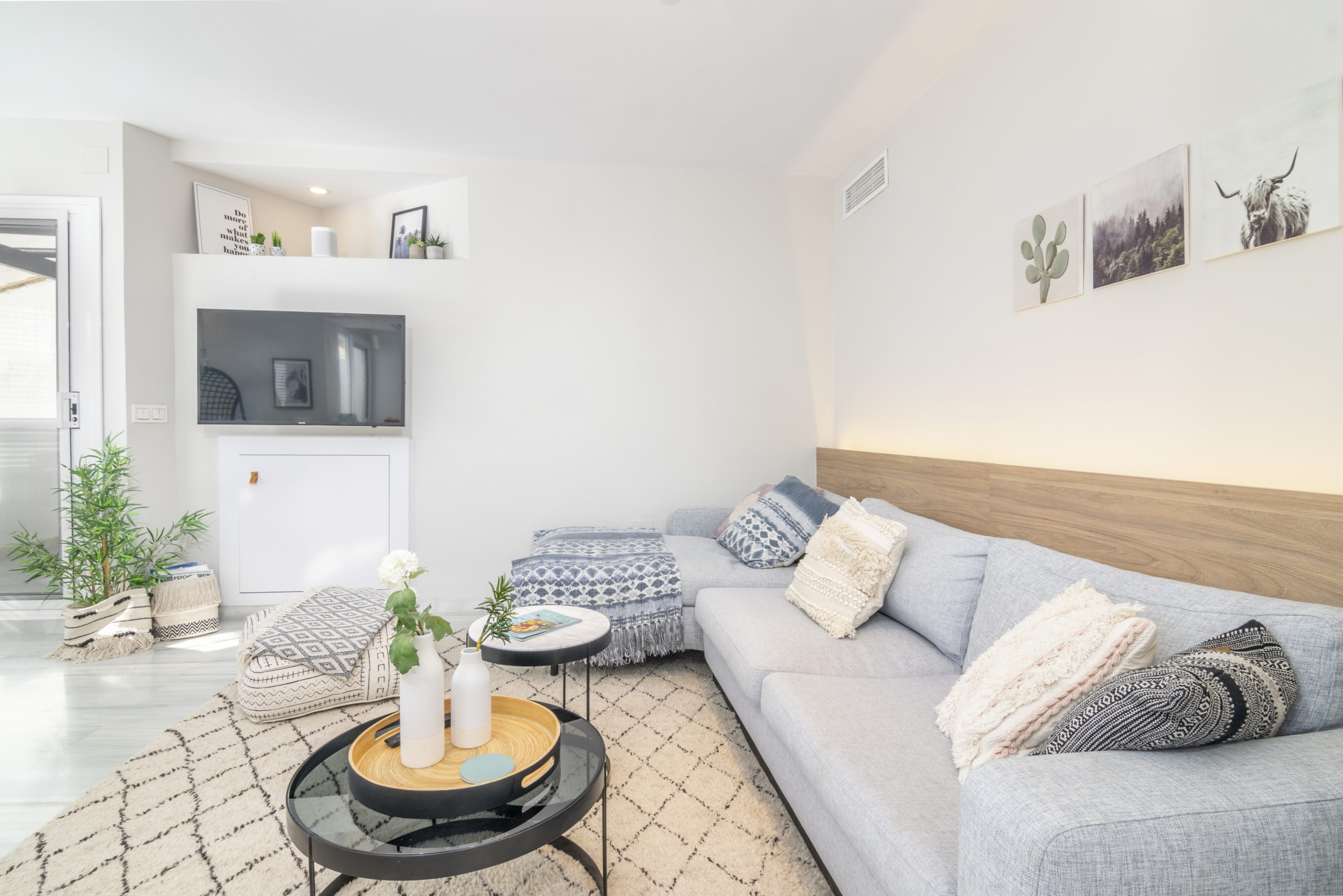 Appartement de 2 chambres à louer pour les vacances, situé dans la communauté fermée d'Aloha Gardens, sécurisée 24 heures sur 24. La communauté dispose de magnifiques jardins communs et de 3 piscines, dont l'une est chauffée. L'appartement est entièrement rénové et comprend une cuisine moderne, deux chambres de bonne taille, une salle de bains avec hydromassage et un salon confortable avec accès à la terrasse. Superbe appartement dans un excellent emplacement. La propriété dispose de chaînes de télévision espagnoles et d'un système Apple TV qui permet d'utiliser Netflix.