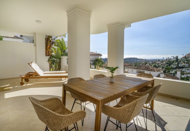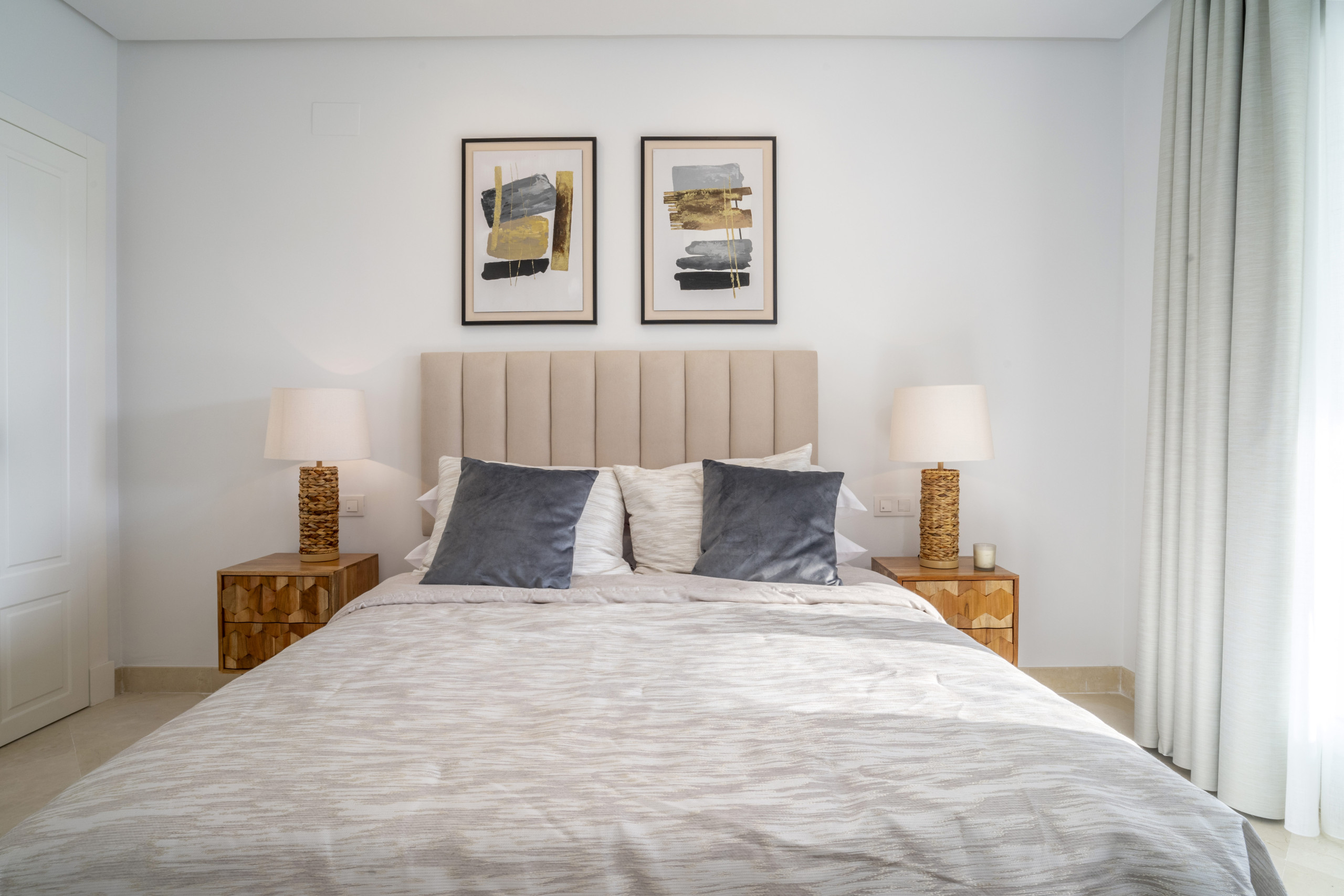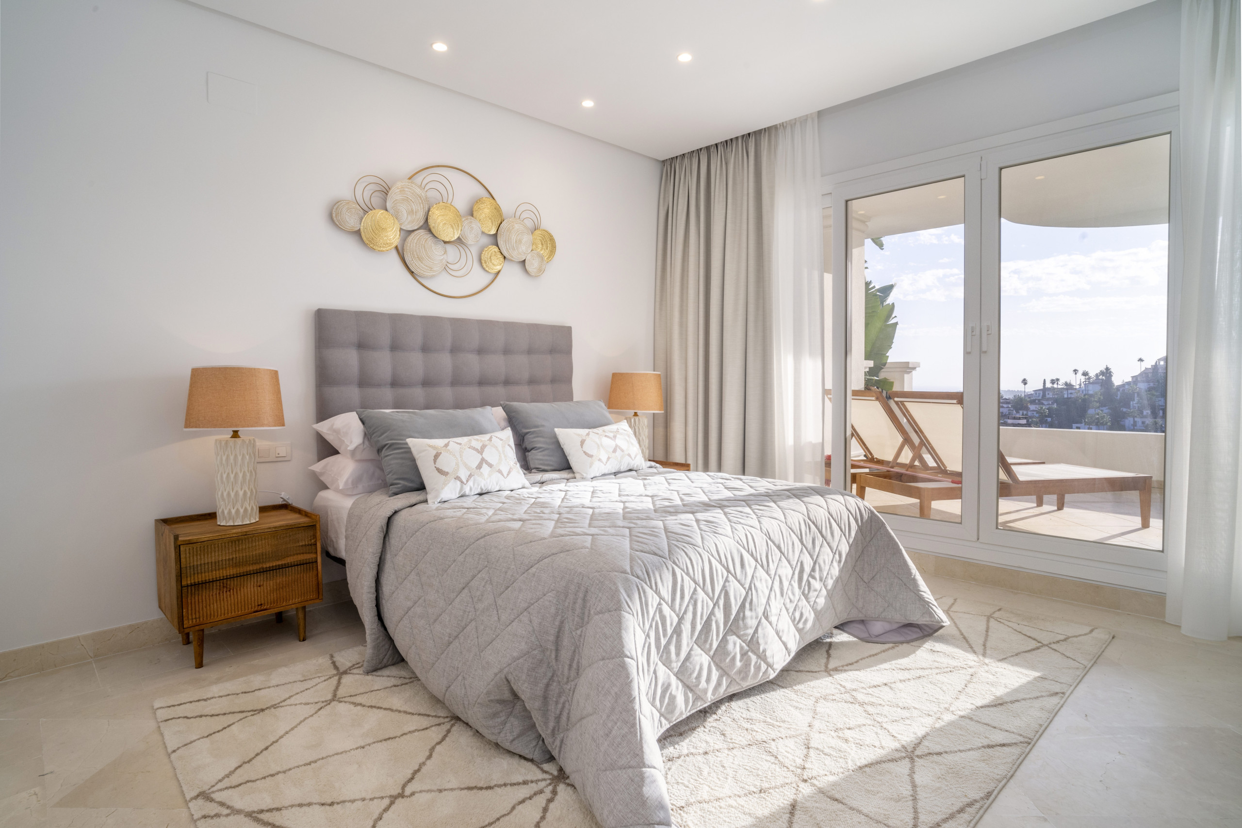 Appartement de 2 chambres à louer pour les vacances, situé dans la communauté fermée d'Aloha Gardens, sécurisée 24 heures sur 24. La communauté dispose de magnifiques jardins communs et de 3 piscines, dont l'une est chauffée. L'appartement est entièrement rénové et comprend une cuisine moderne, deux chambres de bonne taille, une salle de bains avec hydromassage et un salon confortable avec accès à la terrasse. Superbe appartement dans un excellent emplacement. La propriété dispose de chaînes de télévision espagnoles et d'un système Apple TV qui permet d'utiliser Netflix.