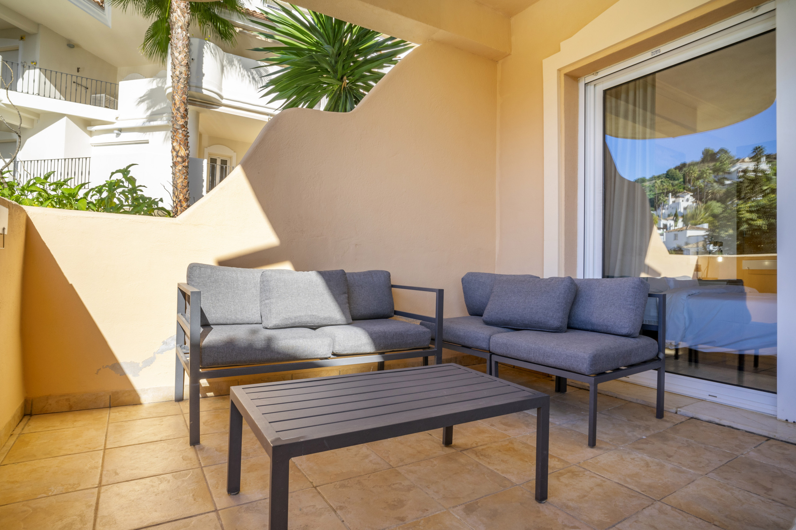 Appartement de 2 chambres à louer pour les vacances, situé dans la communauté fermée d'Aloha Gardens, sécurisée 24 heures sur 24. La communauté dispose de magnifiques jardins communs et de 3 piscines, dont l'une est chauffée. L'appartement est entièrement rénové et comprend une cuisine moderne, deux chambres de bonne taille, une salle de bains avec hydromassage et un salon confortable avec accès à la terrasse. Superbe appartement dans un excellent emplacement. La propriété dispose de chaînes de télévision espagnoles et d'un système Apple TV qui permet d'utiliser Netflix.