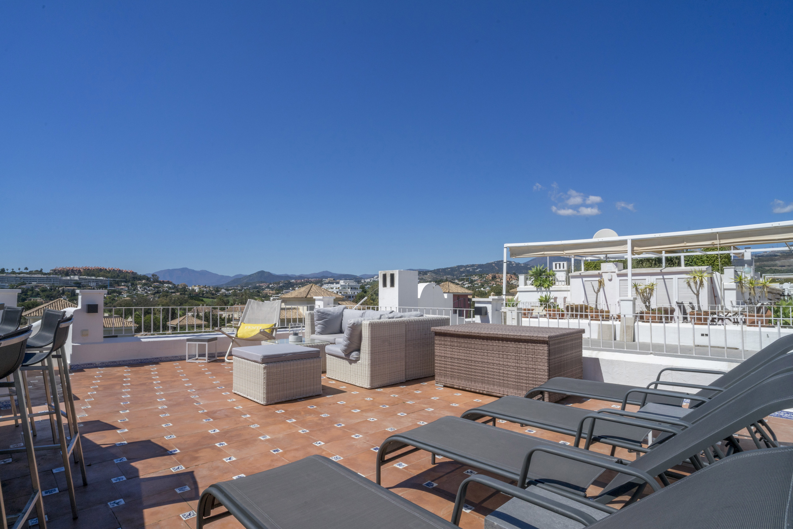 Cet attrayant penthouse d'angle de deux chambres à coucher, situé à La Dama de Noche, est disponible pour la location de vacances. La communauté résidentielle fermée dispose d'une sécurité 24 heures sur 24 avec un gardien et une surveillance vidéo. Le complexe est très populaire auprès des vacanciers car il offre deux immenses piscines avec beaucoup d'espace pour les bains de soleil, des courts de padel, des jardins bien entretenus, un café sur place et un mini-marché.