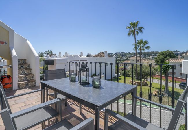 Appartement de 2 chambres à louer pour les vacances, situé dans la communauté fermée d'Aloha Gardens, sécurisée 24 heures sur 24. La communauté dispose de magnifiques jardins communs et de 3 piscines, dont l'une est chauffée. L'appartement est entièrement rénové et comprend une cuisine moderne, deux chambres de bonne taille, une salle de bains avec hydromassage et un salon confortable avec accès à la terrasse. Superbe appartement dans un excellent emplacement. La propriété dispose de chaînes de télévision espagnoles et d'un système Apple TV qui permet d'utiliser Netflix.