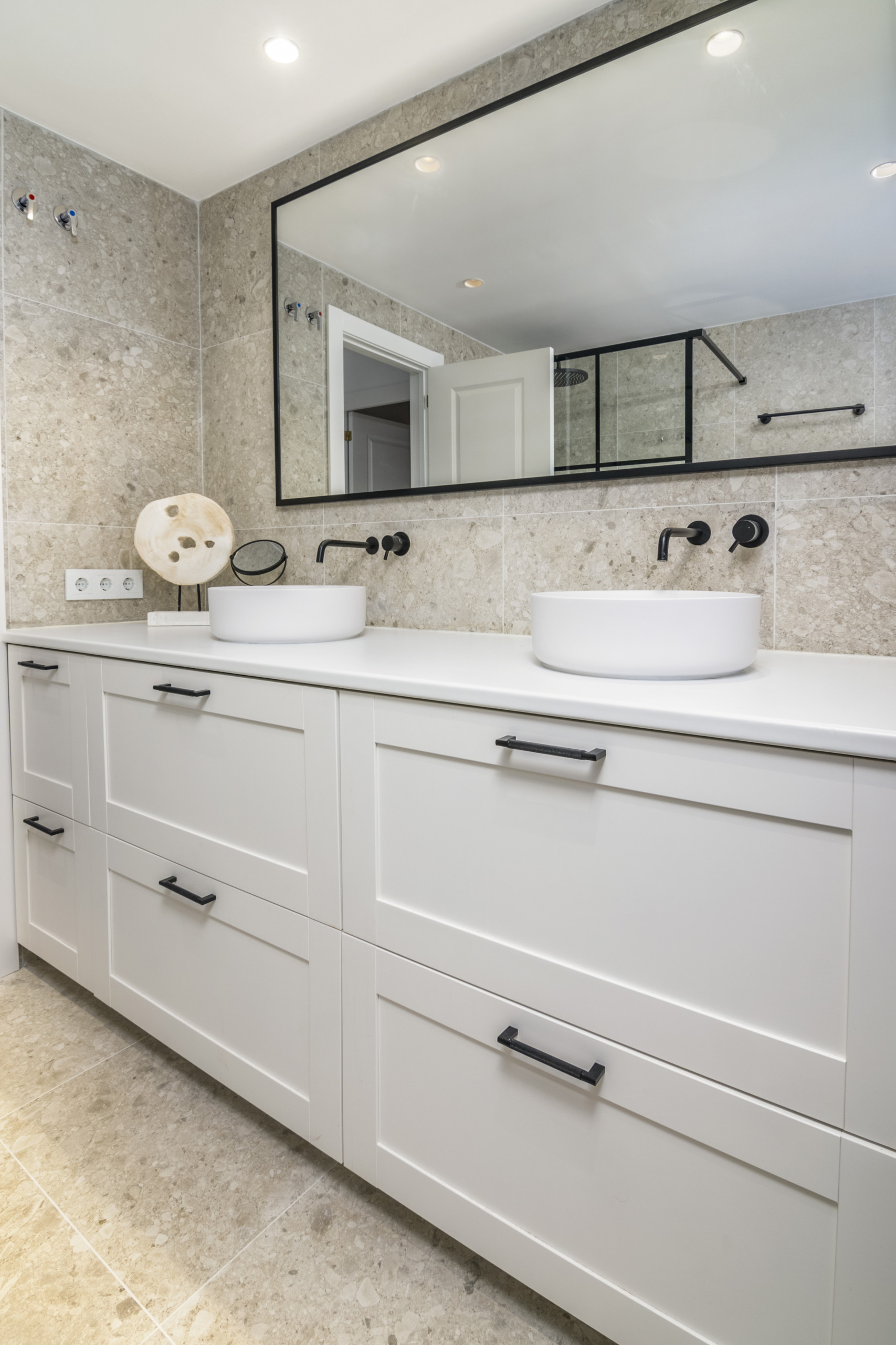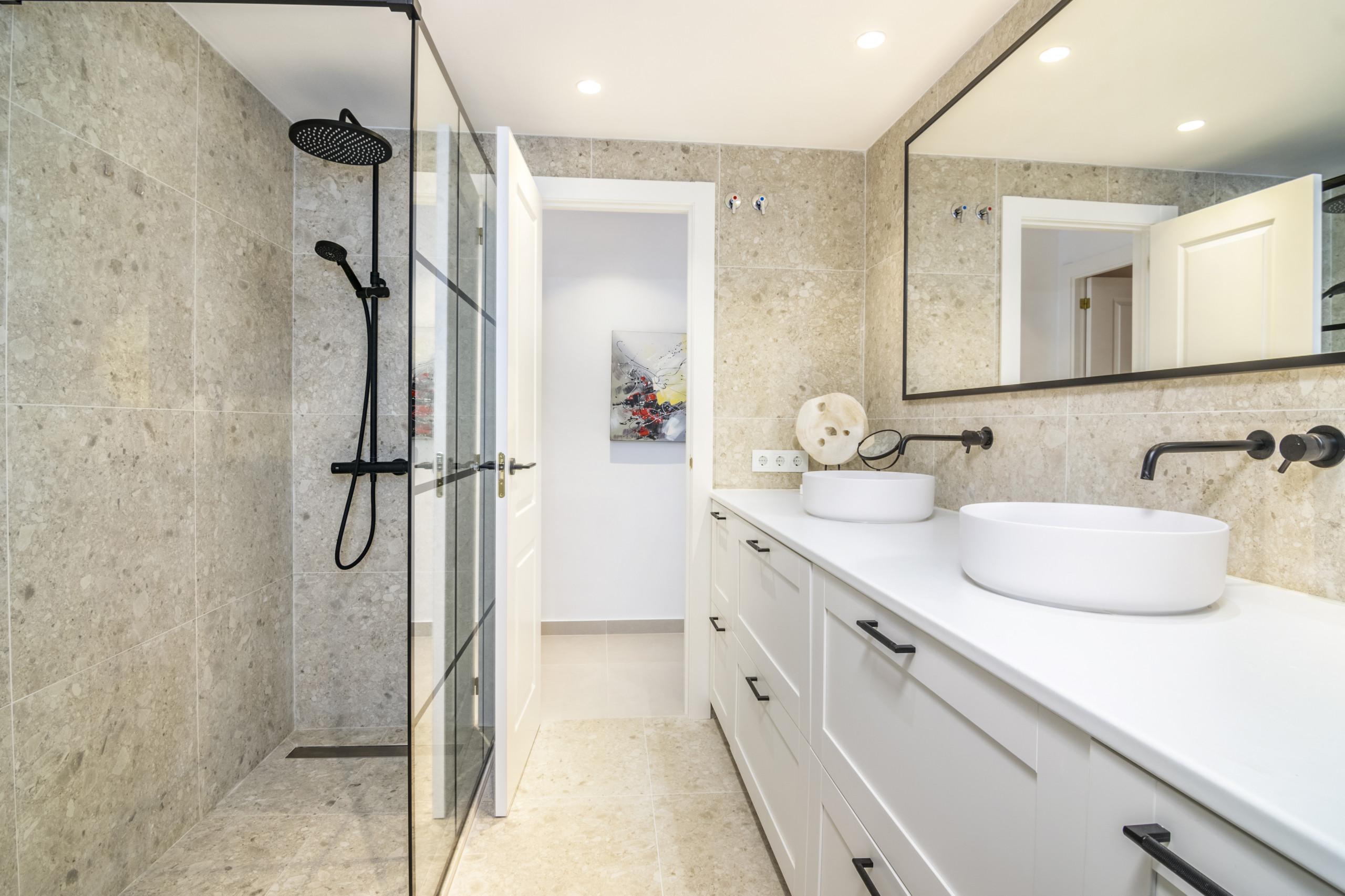 Pour accéder à la propriété, il y a trois séries d'escaliers. Il n'y a pas d'ascenseur dans la communauté. À l'intérieur, des toilettes pour les invités avec une douche sur la droite. Tout droit, vous avez la cuisine entièrement équipée avec des appareils électroménagers. Une buanderie séparée avec machine à laver. A gauche de l'entrée, un espace ouvert comprenant la salle à manger et le salon. L'accès direct à la fantastique terrasse avec de belles vues sur la mer offre un espace agréable pour profiter d'un dîner en plein air. La propriété dispose de deux chambres à coucher présentées avec goût et de grande qualité. La chambre principale, avec un lit de 180 cm, dispose d'un accès direct à la terrasse. La chambre d'amis dispose d'un lit de 160 cm. Les deux chambres partagent une salle de bains avec douche.