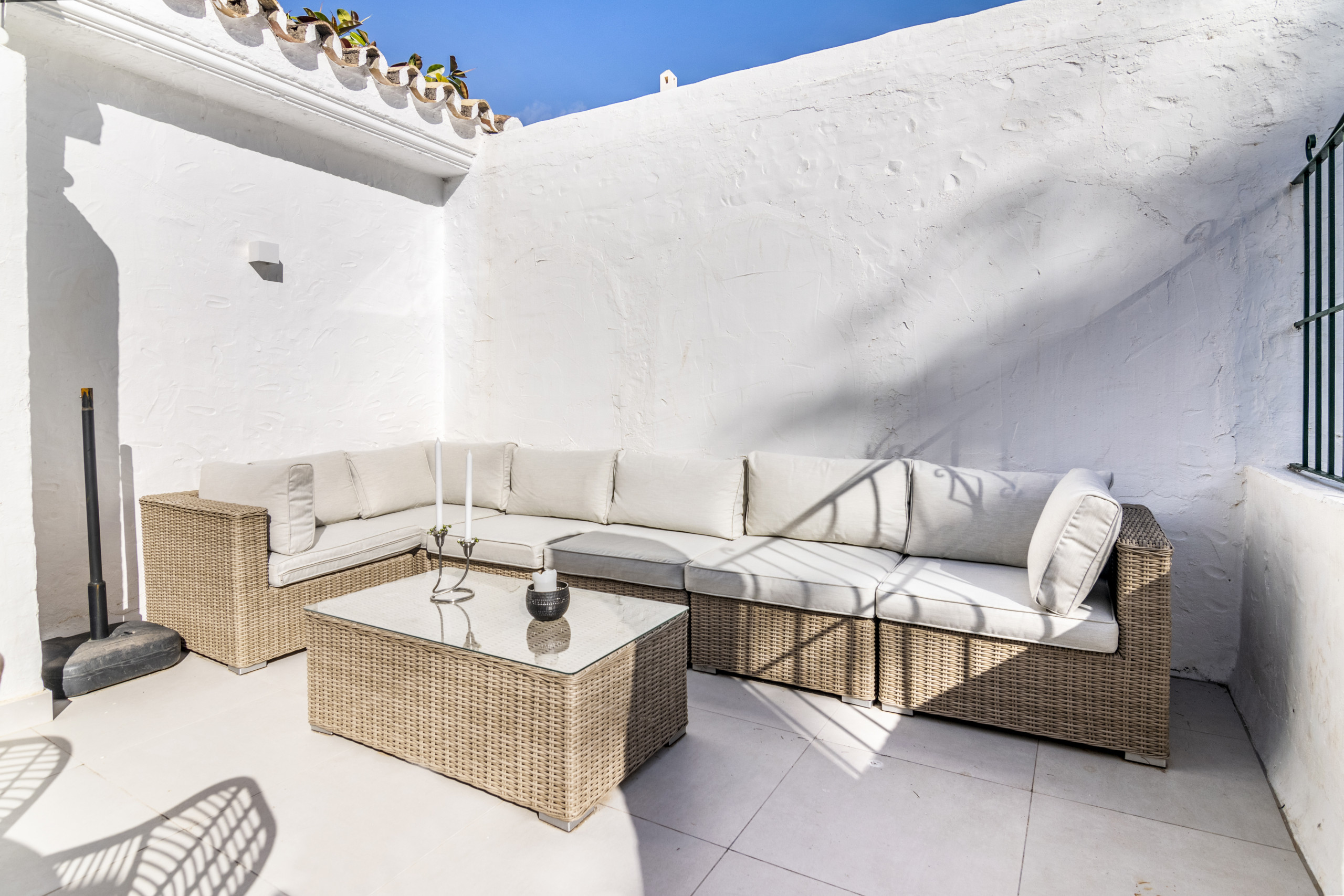 La terrasse principale est le cœur de la maison. Spacieuse et orientée à l'est pour le soleil du matin et des vues panoramiques. C'est l'endroit idéal pour commencer la journée avec un petit-déjeuner au soleil ou se détendre avec des boissons du soir après avoir exploré Marbella.