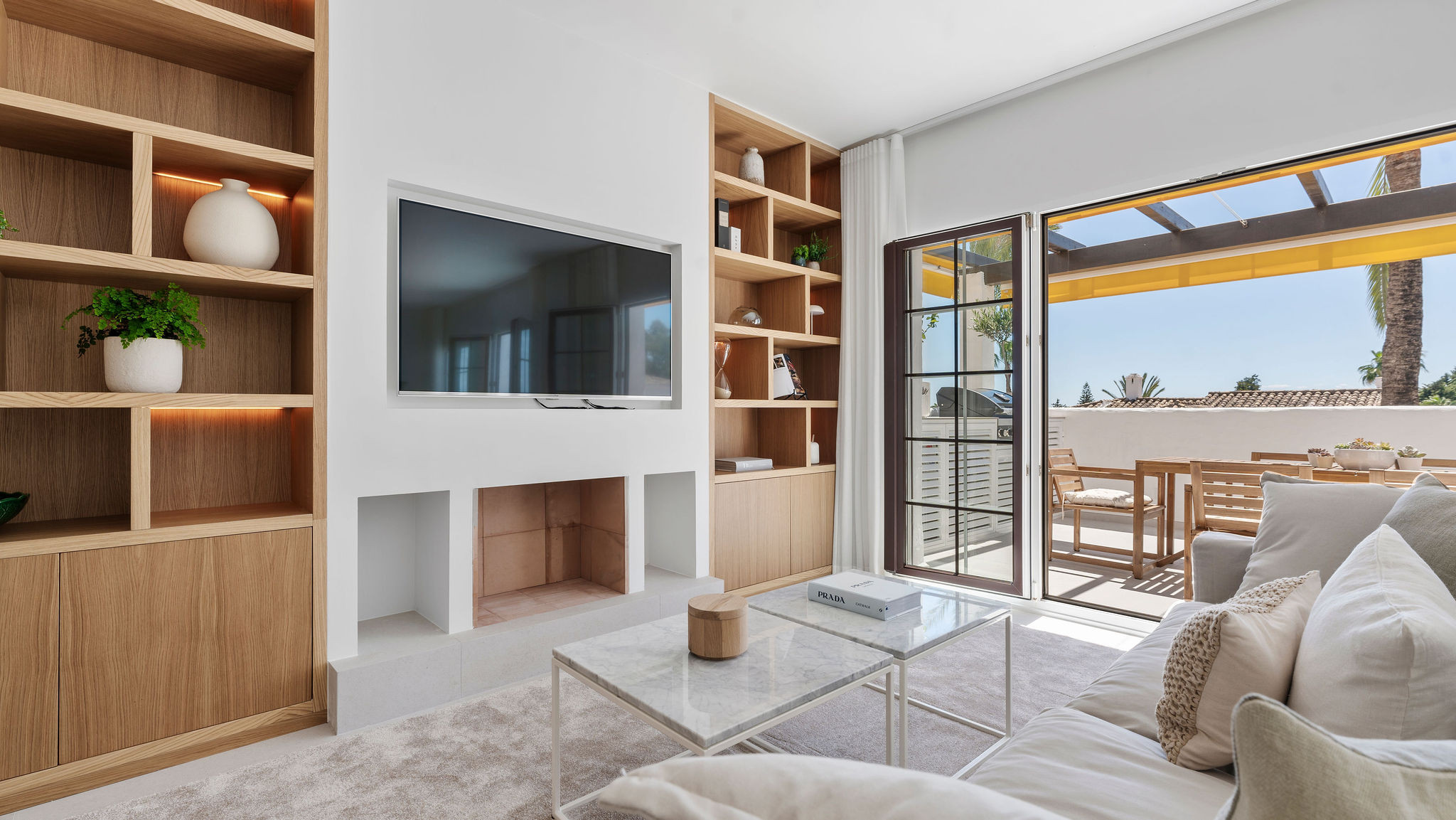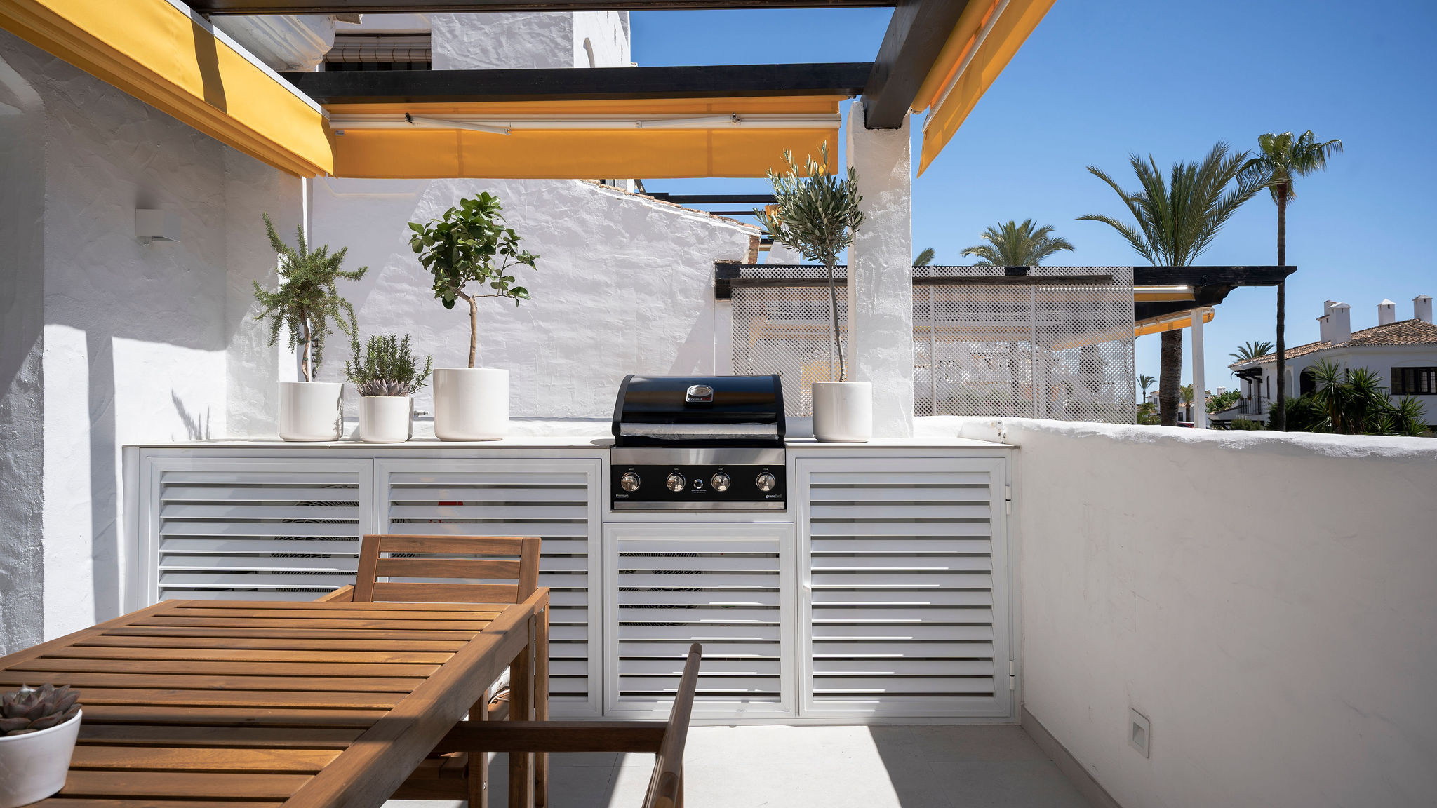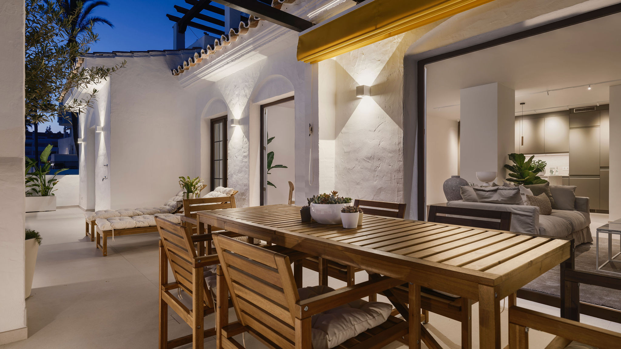La terrasse principale est le cœur de la maison. Spacieuse et orientée à l'est pour le soleil du matin et des vues panoramiques. C'est l'endroit idéal pour commencer la journée avec un petit-déjeuner au soleil ou se détendre avec des boissons du soir après avoir exploré Marbella.