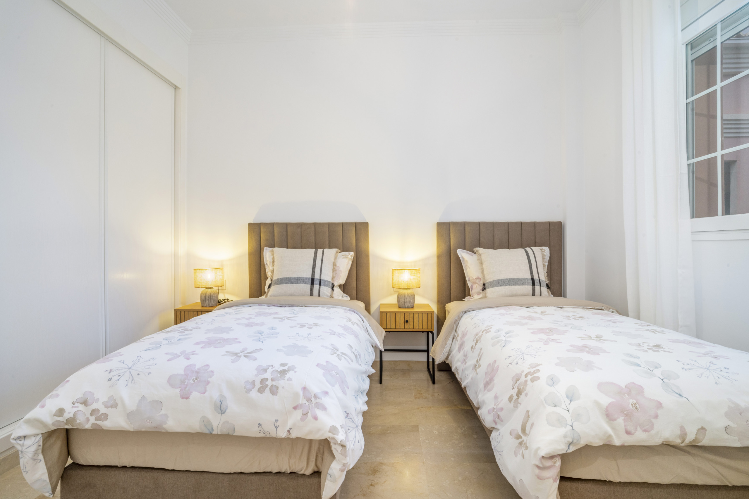L'appartement dispose de deux chambres spacieuses, de deux salles de bains modernes et d'un canapé-lit confortable, pouvant accueillir jusqu'à six personnes. Récemment rénové avec de nouveaux meubles, lits et décoration, il offre un aspect frais et moderne tout en conservant une atmosphère chaleureuse et conviviale. Avec la climatisation dans chaque pièce et le WiFi haut débit, il est facile de travailler, se détendre ou regarder des contenus en streaming pendant votre séjour.
