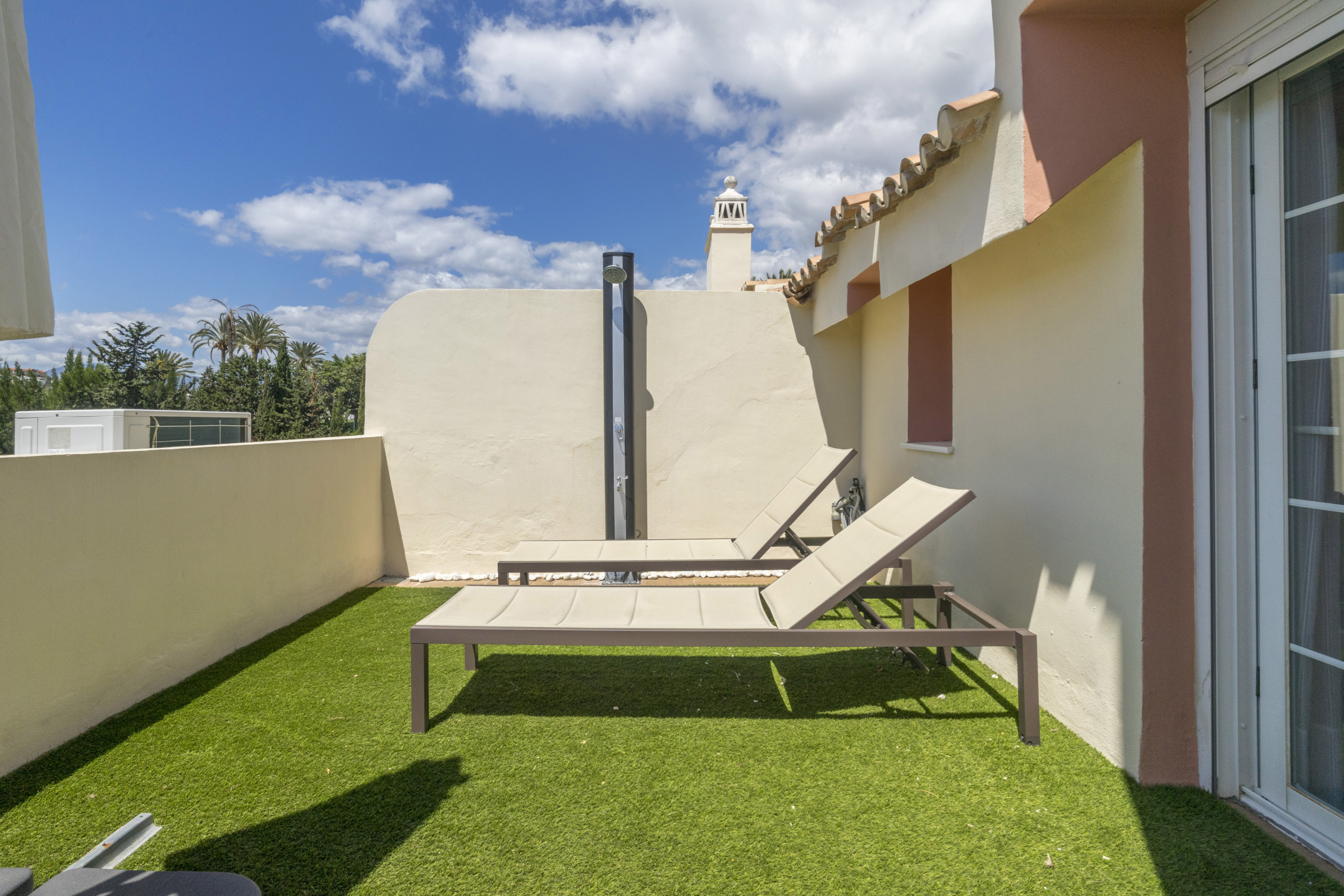 La terrasse principale est le cœur de la maison. Spacieuse et orientée à l'est pour le soleil du matin et des vues panoramiques. C'est l'endroit idéal pour commencer la journée avec un petit-déjeuner au soleil ou se détendre avec des boissons du soir après avoir exploré Marbella.
