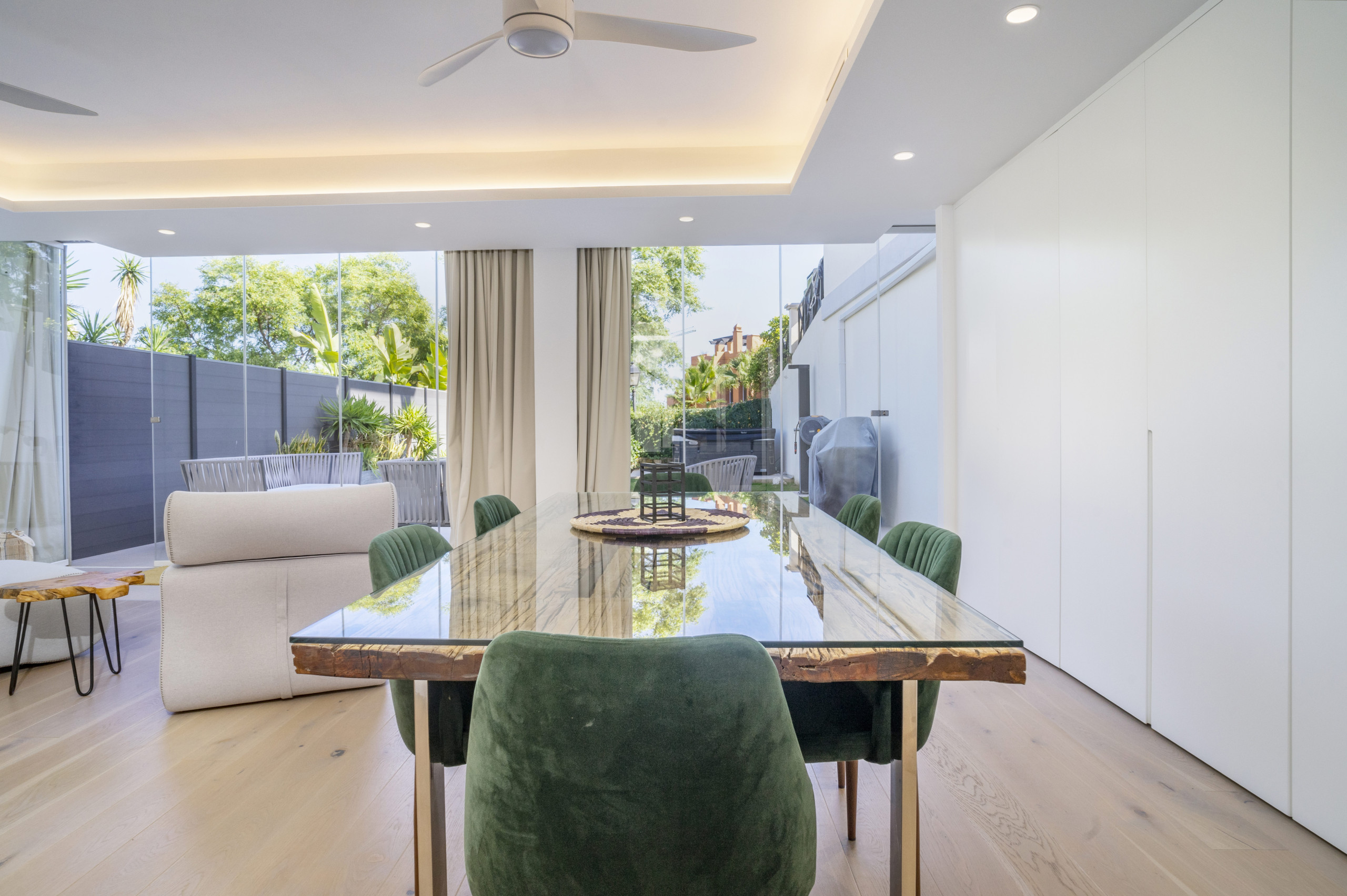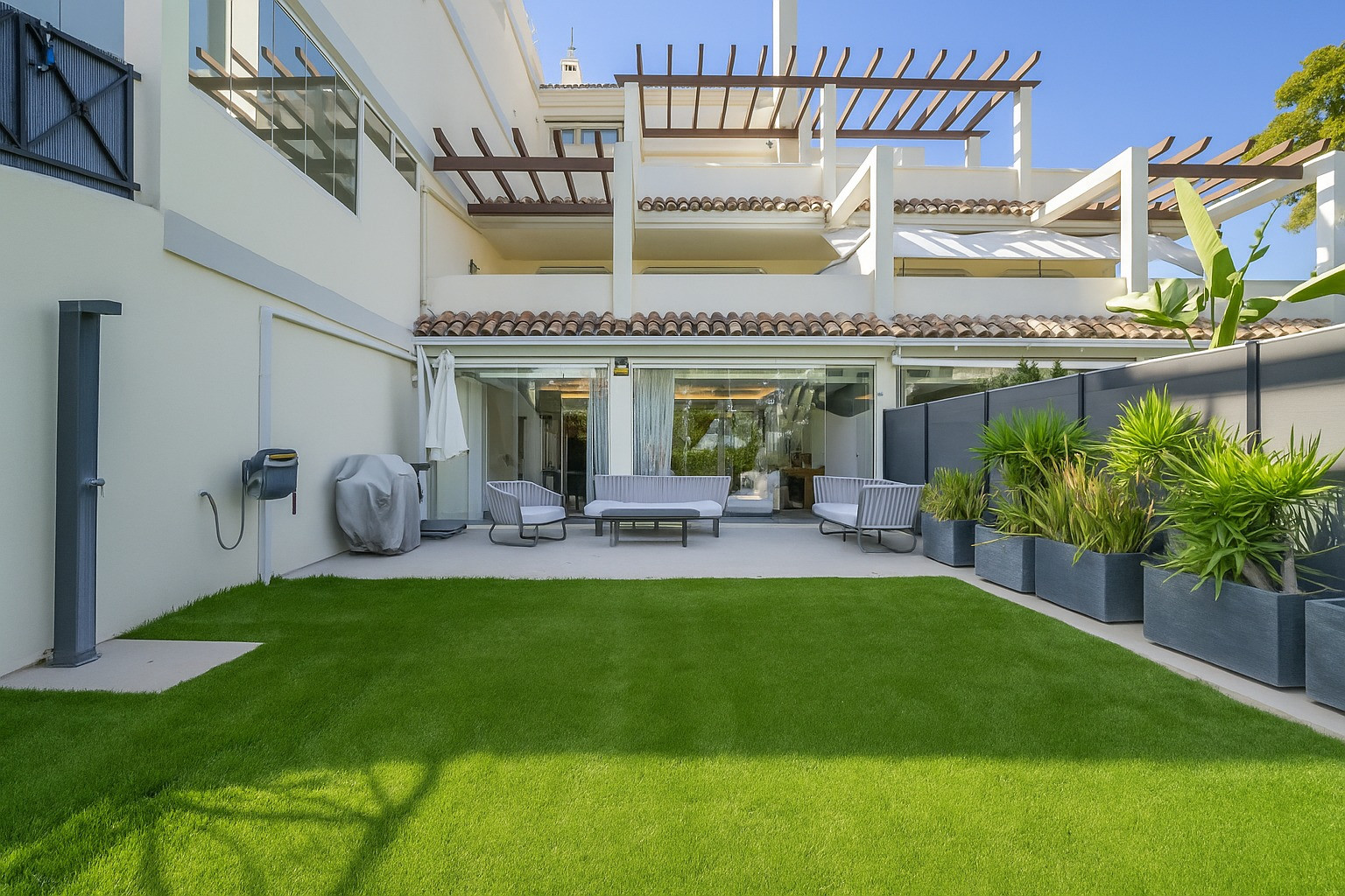 La terrasse principale est le cœur de la maison. Spacieuse et orientée à l'est pour le soleil du matin et des vues panoramiques. C'est l'endroit idéal pour commencer la journée avec un petit-déjeuner au soleil ou se détendre avec des boissons du soir après avoir exploré Marbella.