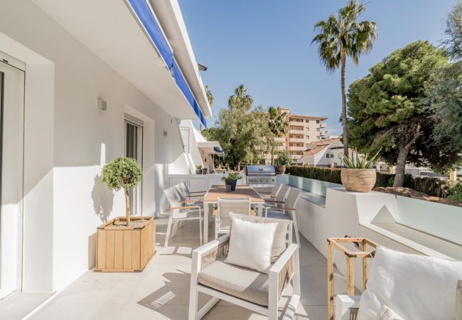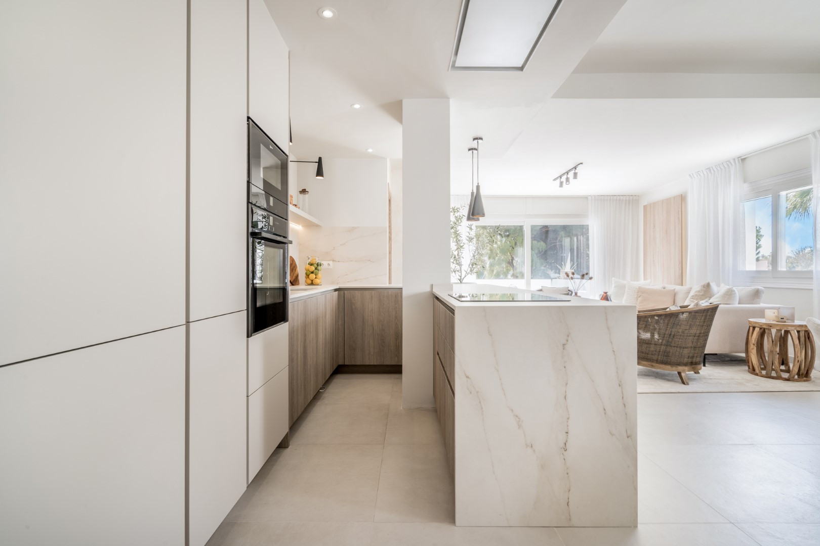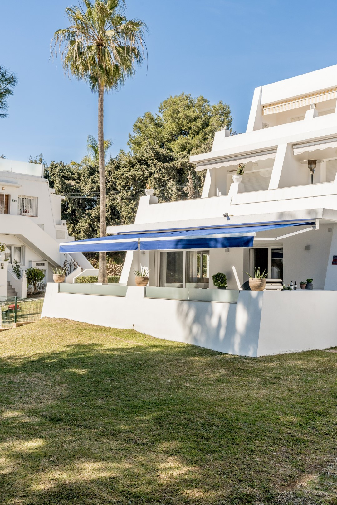 Il s'agit d'un appartement avec 4 chambres et 2 salons. Il n'est pas facile de trouver un appartement avec 4 chambres à coucher dans cet endroit, c'est donc une trouvaille rare ! Il s'agit d'un rez-de-chaussée construit sur un seul niveau pour plus de commodité. L'entrée mène au plan ouvert de la maison, avec le salon à droite et la salle à manger à gauche. En continuant sur la gauche, vous trouverez trois chambres élégantes et présentées avec goût, une suite double à l'une des extrémités et les deux autres chambres reliées par une salle de télévision confortable avec barre de son et cheminée électrique. Ces deux chambres partagent une salle de bains avec douche à l'italienne. Vous trouverez également un grand espace de rangement et une buanderie de ce côté de la propriété. Le salon et la cuisine ouverte donnent sur une grande terrasse ensoleillée orientée au sud.