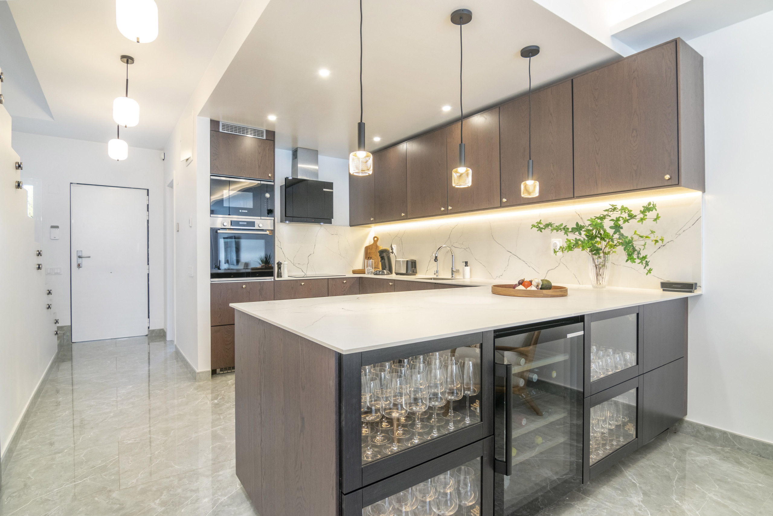 La propriété a été récemment entièrement rénovée et dispose d'un salon/salle à manger ouvert avec une cuisine intégrée moderne entièrement équipée avec beaucoup d'espace et équipée des derniers appareils électroménagers. La cuisine bénéficie d'équipements de luxe tels qu'un réfrigérateur à vin et de l'eau filtrée.