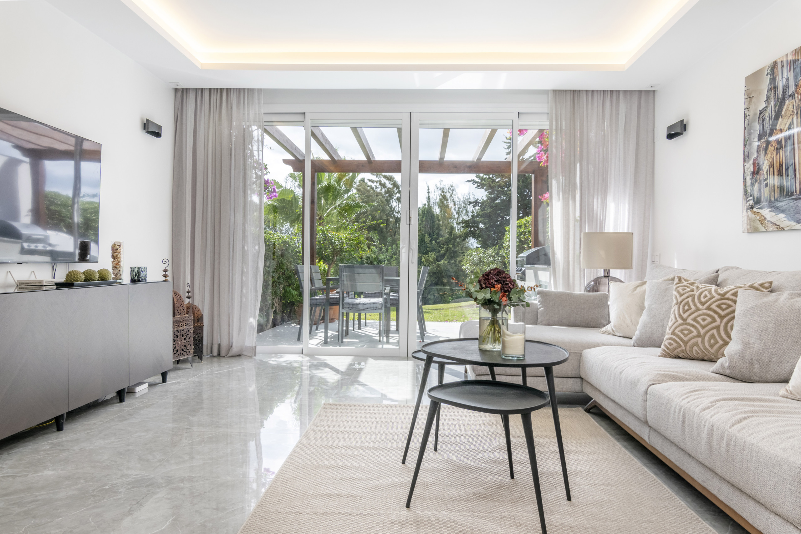 Bienvenue dans cette magnifique maison de ville d'angle récemment rénovée dans la communauté recherchée des Pérgolas, à Nueva Andalucía. Conçue dans un style scandinave moderne, c'est le mélange parfait de confort, de style et de commodité.