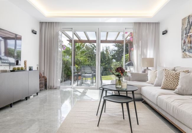 Superbe maison de ville à Nueva Andalucía, à proximité du club de golf Aloha, disponible pour la location de vacances. Entièrement rénovée, de style moderne et à proximité de terrains de golf, voilà les termes qui décrivent le mieux cette merveilleuse propriété. Si vous êtes amateur de golf, vous ne pourriez pas être mieux situé car ce développement donne sur les magnifiques greens du terrain de golf d'Aloha. C'est la base idéale pour vos vacances, car vous êtes à quelques minutes de toutes les commodités, tout en étant niché dans votre propre petite oasis.