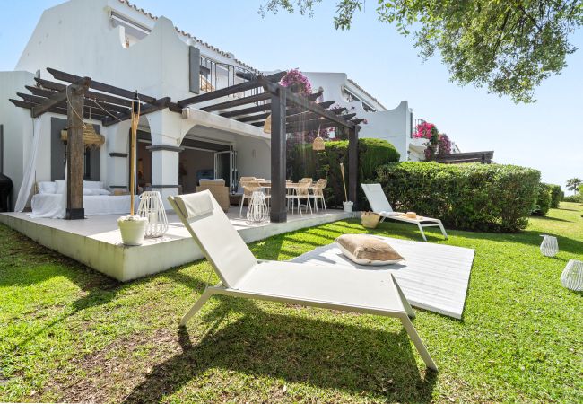 Superbe maison de ville à Nueva Andalucía, à proximité du club de golf Aloha, disponible pour la location de vacances. Entièrement rénovée, de style moderne et à proximité de terrains de golf, voilà les termes qui décrivent le mieux cette merveilleuse propriété. Si vous êtes amateur de golf, vous ne pourriez pas être mieux situé car ce développement donne sur les magnifiques greens du terrain de golf d'Aloha. C'est la base idéale pour vos vacances, car vous êtes à quelques minutes de toutes les commodités, tout en étant niché dans votre propre petite oasis.