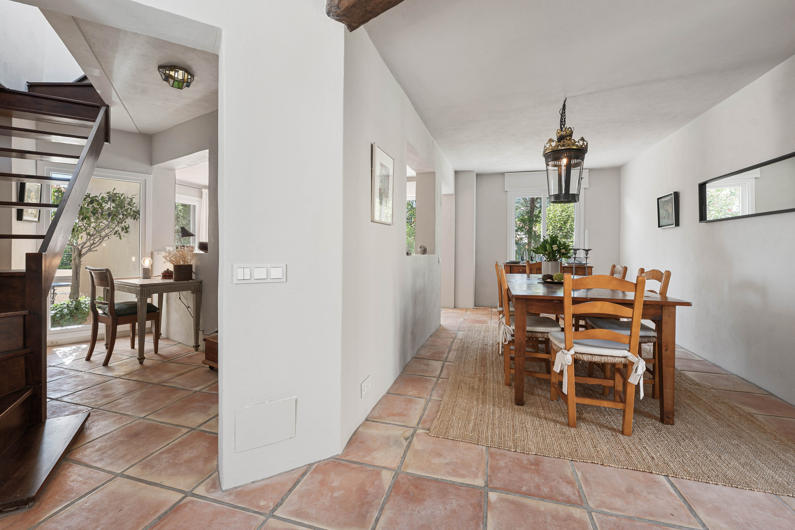 Le cœur de la maison présente un salon et une salle à manger spacieux avec un style chic et charmant et une cuisine moderne entièrement équipée. Avec des appareils de première qualité, deux lave-vaisselle et de l'eau potable filtrée directement du robinet, tout a été pensé pour votre confort.