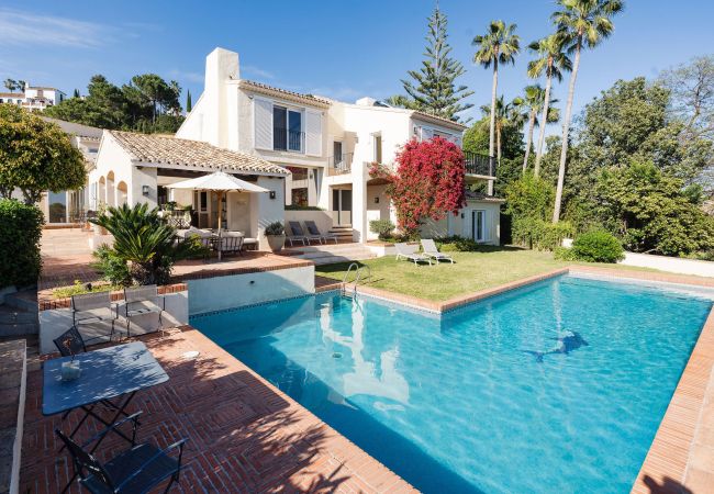 Bienvenue dans cette villa de luxe pleine de charme, une location de vacances véritablement unique nichée dans le prestigieux Madroñal 1, à quelques minutes de tous les services et de la côte. Cette propriété exceptionnelle offre non seulement des vues imprenables sur la mer mais aussi une configuration unique, conçue avec intimité, confort et élégance.