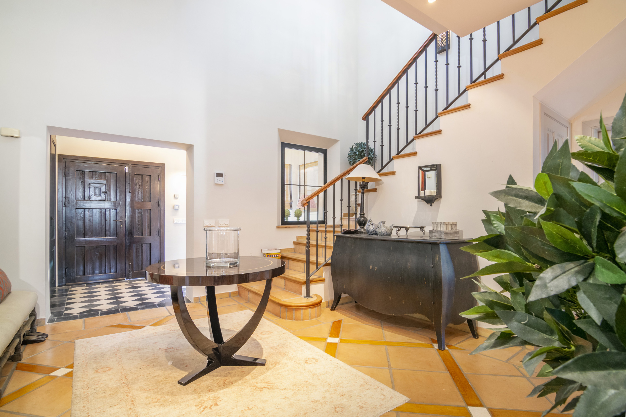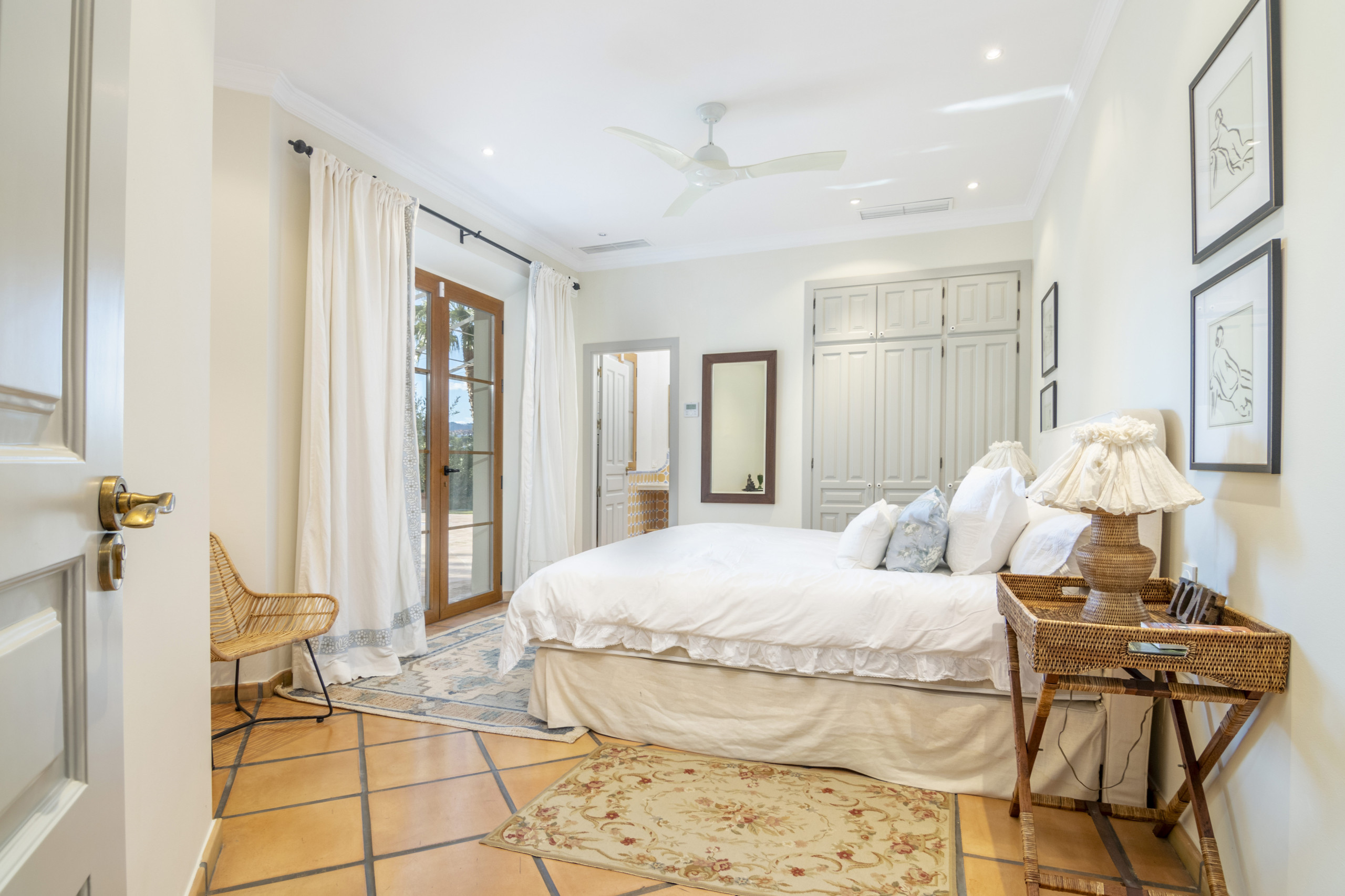 Passons maintenant à la visite guidée : Lorsque vous entrez dans la maison principale, vous trouverez un hall d'entrée accueillant. Sur la gauche, vous trouverez des toilettes pour les invités et la cuisine avec salle à manger qui donne accès à un patio avec table à manger à l'arrière de la maison, ainsi qu'à la terrasse et à la piscine. De ce côté de la maison se trouvent également deux chambres doubles avec salle de bains attenante. En prenant la droite à l'entrée, on accède à la spacieuse salle de séjour, présentée avec goût, qui donne une impression de chaleur et de confort. Cette direction vous mène à deux autres chambres avec un accès direct à la terrasse et à la piscine, ce qui permet à la lumière naturelle de pénétrer dans ces pièces. Les deux chambres disposent d'une salle de bains en-suite. Le dernier étage est consacré à la suite parentale, avec un dressing, une salle de bains privative et un accès à une belle terrasse avec vue sur le golf.