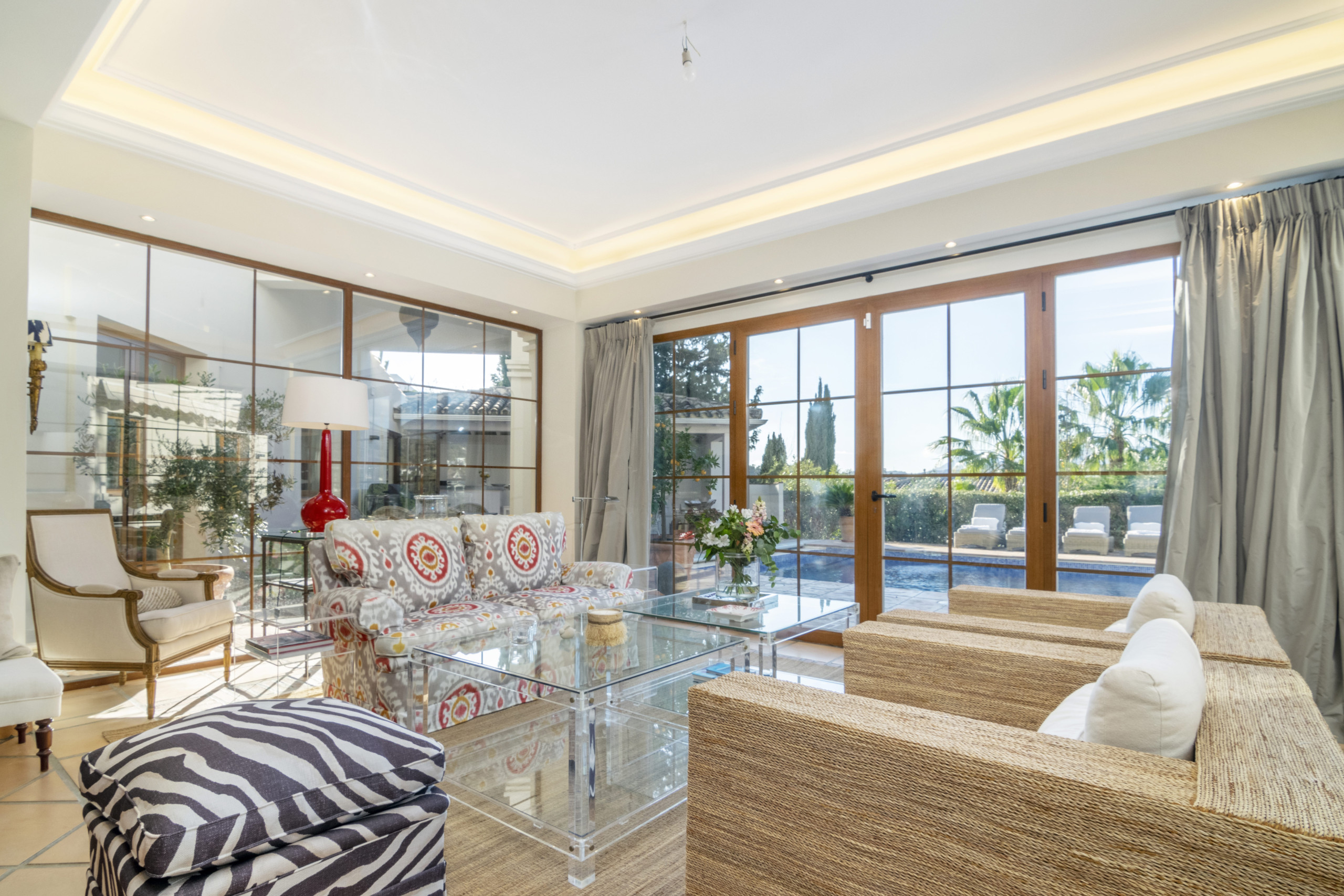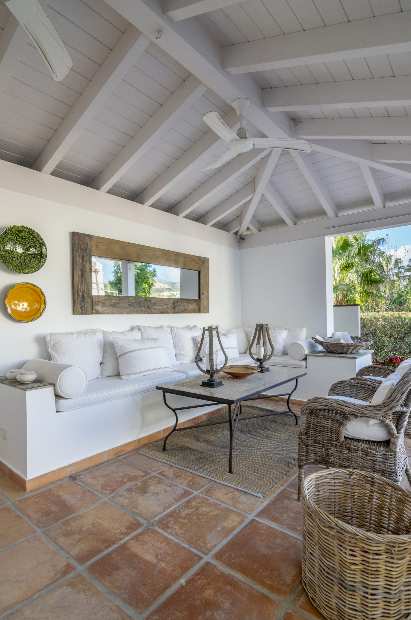La vie en plein air est tout aussi spectaculaire : une longue table pour 14 convives, une piscine scintillante, un gazebo ombragé pour se détendre, et un espace salon confortable pour des journées paresseuses et baignées de soleil. Chaque coin de Villa Las Brisas a été conçu pour combiner style, confort et le mode de vie méditerranéen ultime.