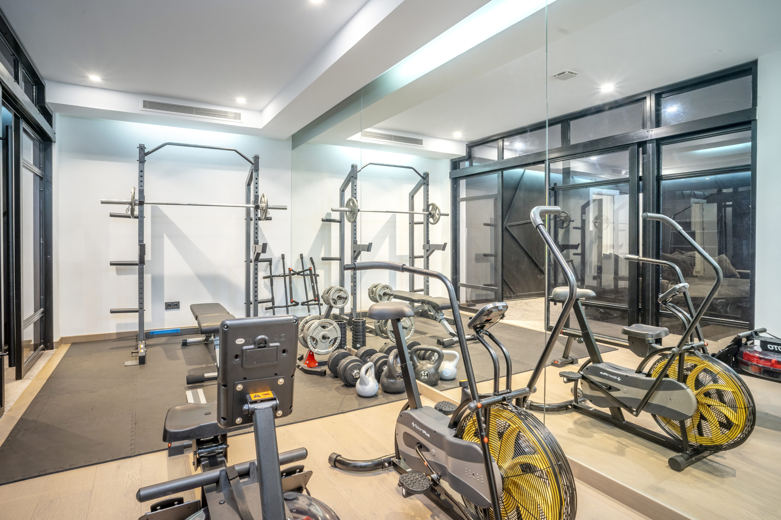 Cette maison répond à toutes les exigences en matière de style de vie et de commodités. Profitez de journées de détente au bord de la piscine privée, poursuivez votre entraînement dans la salle de sport, détendez-vous devant un film dans la confortable salle de cinéma et laissez les enfants jouer dans leur espace dédié. Pour les amateurs de golf, il y a même un putting green pour s'entraîner un peu à la maison.