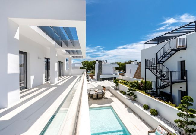 Cette villa à San Pedro est une base de vacances idéale pour ceux qui recherchent un séjour de luxe paisible tout en restant proche de la plage et des commodités. Nouvelle construction, design contemporain et belles vues sur la mer sont des termes qui décrivent le mieux cette villa de rêve qui vous appelle ! Rêvez-vous de vous réveiller en vacances et de pouvoir marcher jusqu'à la plage pour une promenade matinale ? Voulez-vous vous asseoir sur votre toit-terrasse privé et profiter des vues imprenables sur la mer ? Êtes-vous une grande famille cherchant à s'offrir une belle villa moderne à louer pour un rassemblement familial ? Alors continuez à lire, nous avons la villa qu'il vous faut…