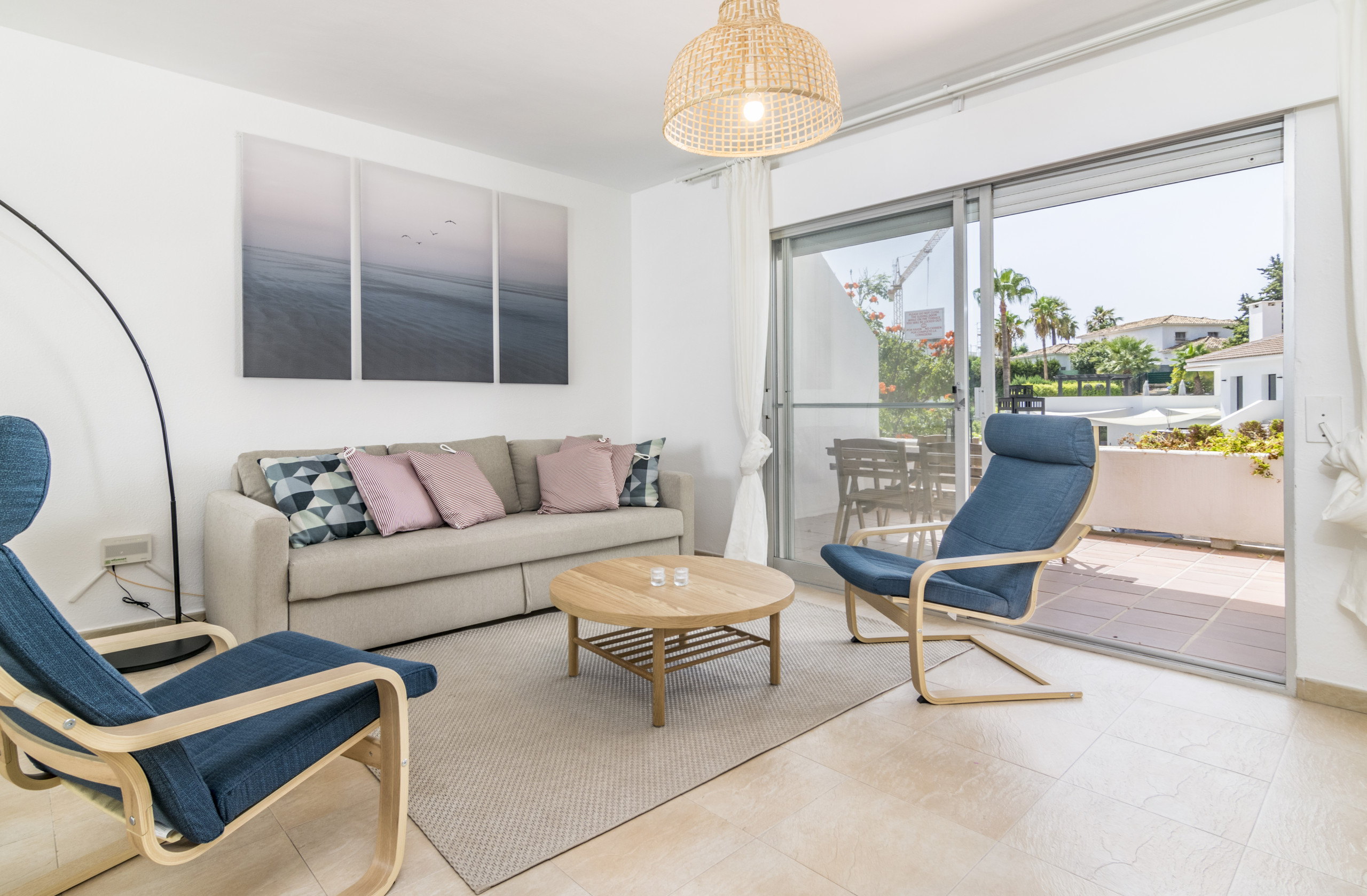 Introducing this tastefully presented one bedroom top floor apartment with walking distance to all amenities. The location is perfect for your next holiday as just a few steps away you have access to several restaurants, cafes and supermarkets. The property has walking distance to Centro Plaza and the renowned Puerto Banus. To access the property, you walk up a set of stairs. Inside, to the right you have the bedroom with separate bathroom with shower. To the left at the entrance you can find the open plan kitchen, living and dining room. Direct access to a lovely terrace. This property comes fitted with all the amenities you would expect: bed linen, towels, pool towels, Nespresso coffee machine, TV, Wifi and BBQ. There is street parking right outside. The property has access to the facilities of Andalucia Garden Club that offers a large communal swimming pool and tennis court. An unbeatable location for your next vacation!