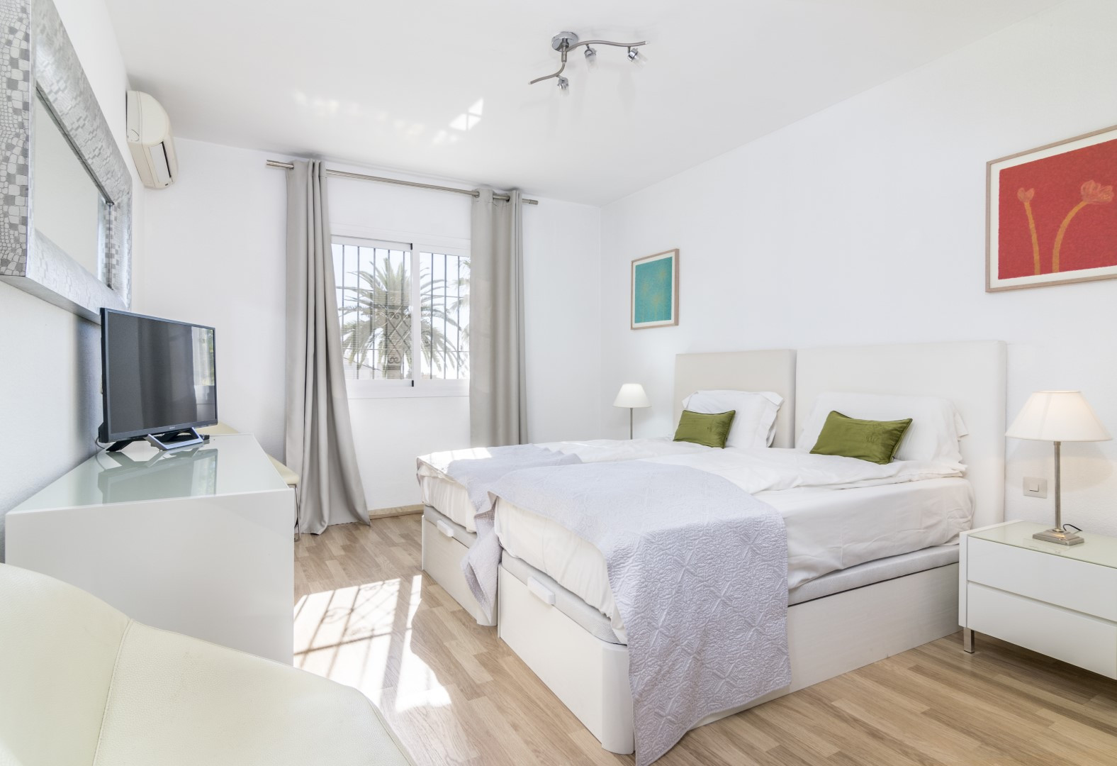 2 bedroom apartment available for holiday rentals situated in the gated community of Aloha Gardens with 24 hours Security. The community has beautiful communal gardens and 3 swimming pools, one of which is heated. The apartment is fully renovated including an updated kitchen, two good-sized bedrooms, 1 bathroom with hydromassage and a comfortable living room with access out onto the terrace. Great apartment in an excellent location. The property has Spanish TV-channels and also Apple TV system where also Netflix can be used.