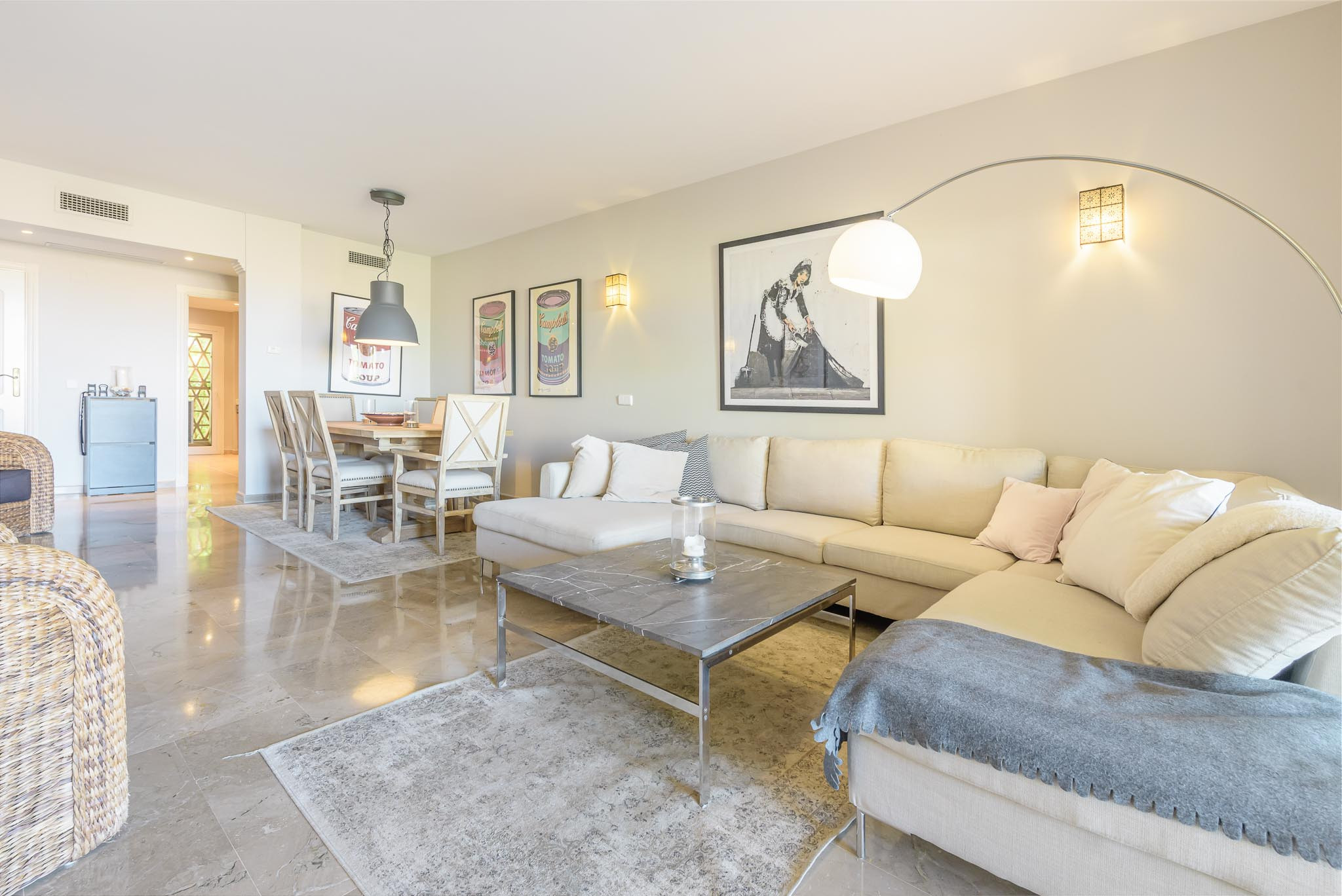 2 bedroom apartment available for holiday rentals situated in the gated community of Aloha Gardens with 24 hours Security. The community has beautiful communal gardens and 3 swimming pools, one of which is heated. The apartment is fully renovated including an updated kitchen, two good-sized bedrooms, 1 bathroom with hydromassage and a comfortable living room with access out onto the terrace. Great apartment in an excellent location. The property has Spanish TV-channels and also Apple TV system where also Netflix can be used.