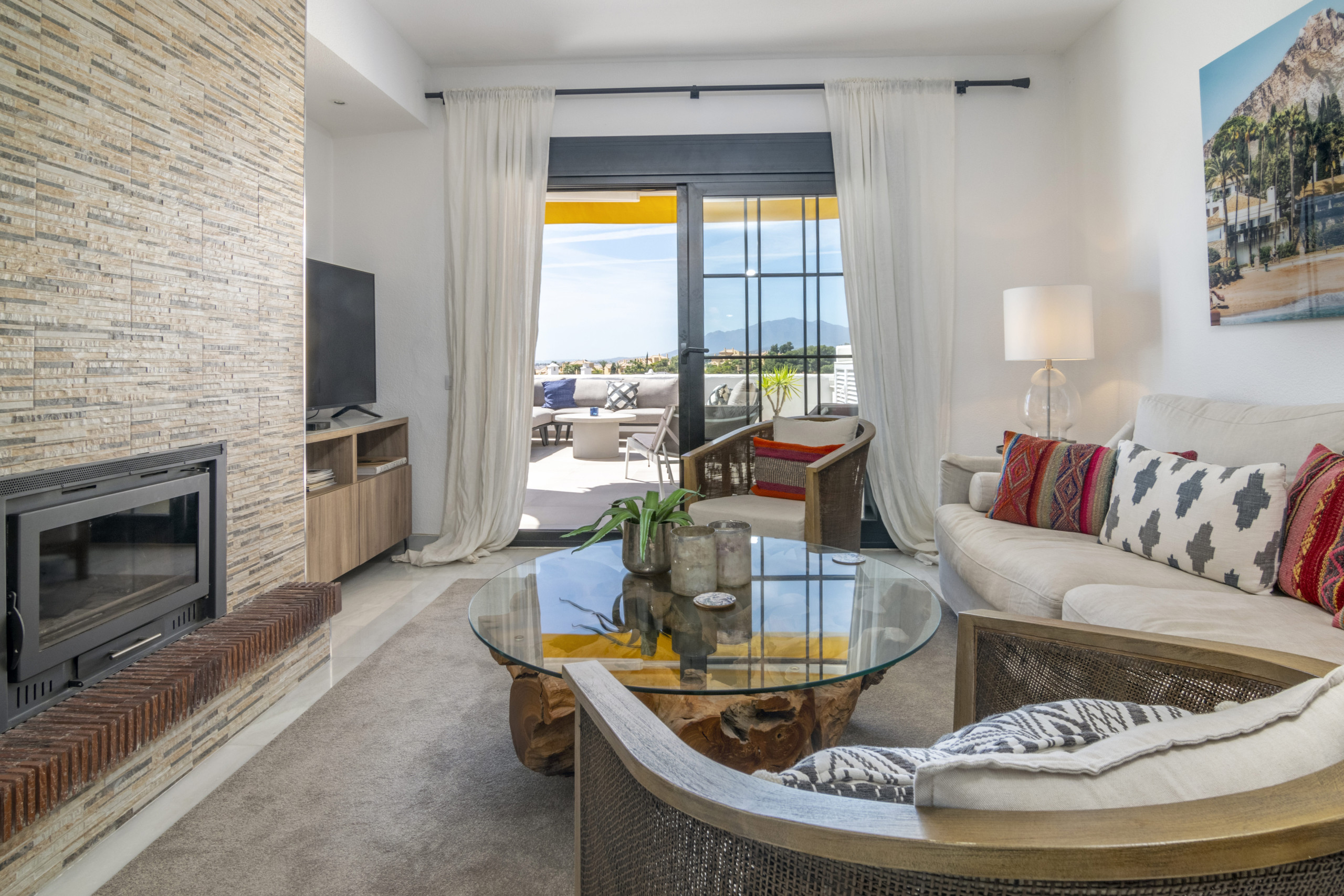 2 bedroom apartment available for holiday rentals situated in the gated community of Aloha Gardens with 24 hours Security. The community has beautiful communal gardens and 3 swimming pools, one of which is heated. The apartment is fully renovated including an updated kitchen, two good-sized bedrooms, 1 bathroom with hydromassage and a comfortable living room with access out onto the terrace. Great apartment in an excellent location. The property has Spanish TV-channels and also Apple TV system where also Netflix can be used.