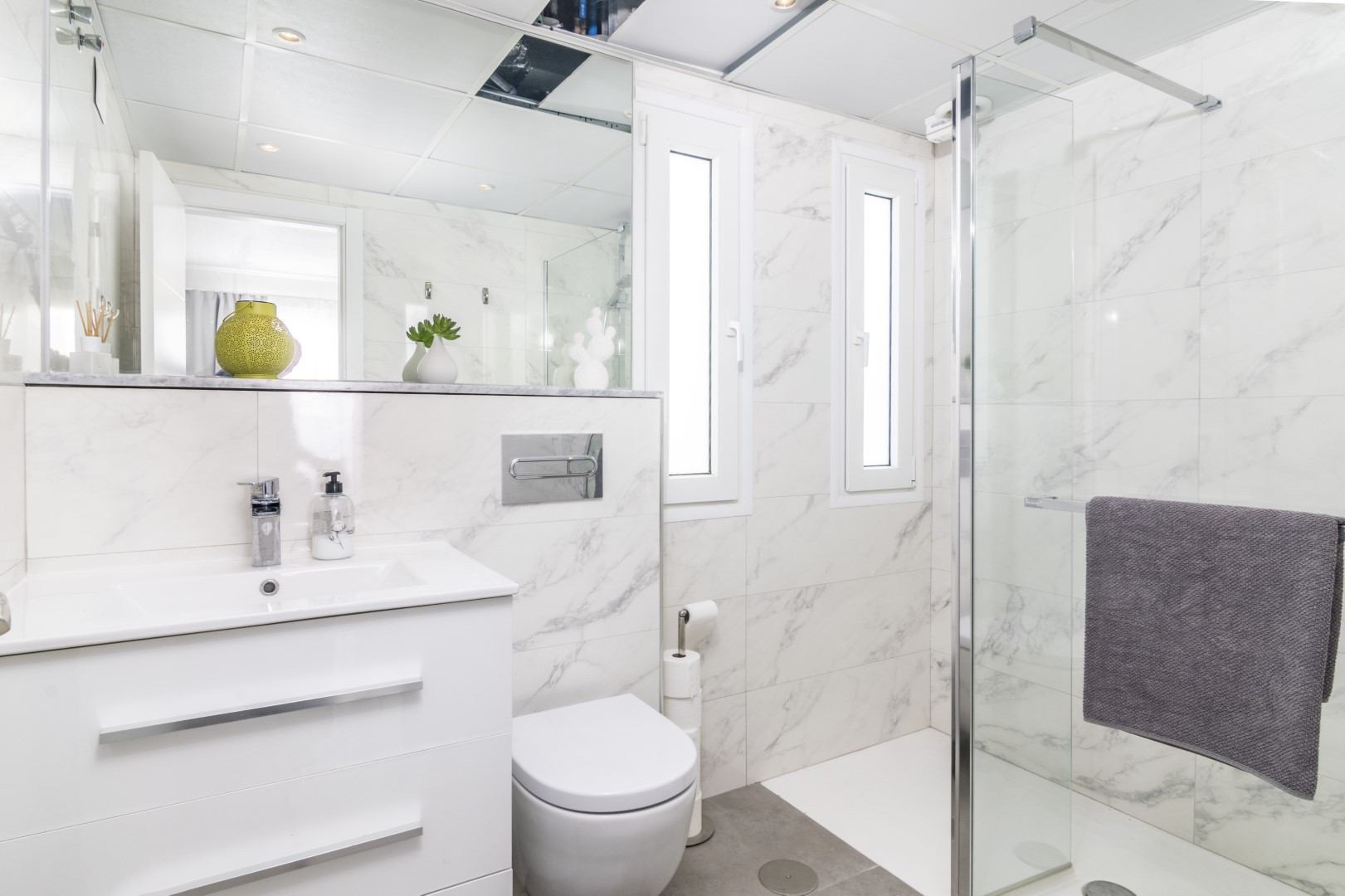 Layout: Hallway which leads to an open-plan dining and living area with a beautiful modern kitchen and high-quality appliances. There is an indoor dining table for up to four people and a cosy sofa area with direct access out to the incredible terrace. The large, L-shaped terrace (93 sqm) has a fabulous outdoor kitchen with fridge, BBQ and plenty of preparation space to enjoy summer dining and ice-cold refreshments. There are sunbeds, outdoor shower, large dining table which fits 8 people and a chill out sofa area. Sit back, relax and soak up the sensational sunshine. Stepping back inside, you will find the master bedroom with twin beds with an en-suite bathroom. The second bedroom has a queen size bed, second bathroom and terrace access. Both bathrooms have a shower.