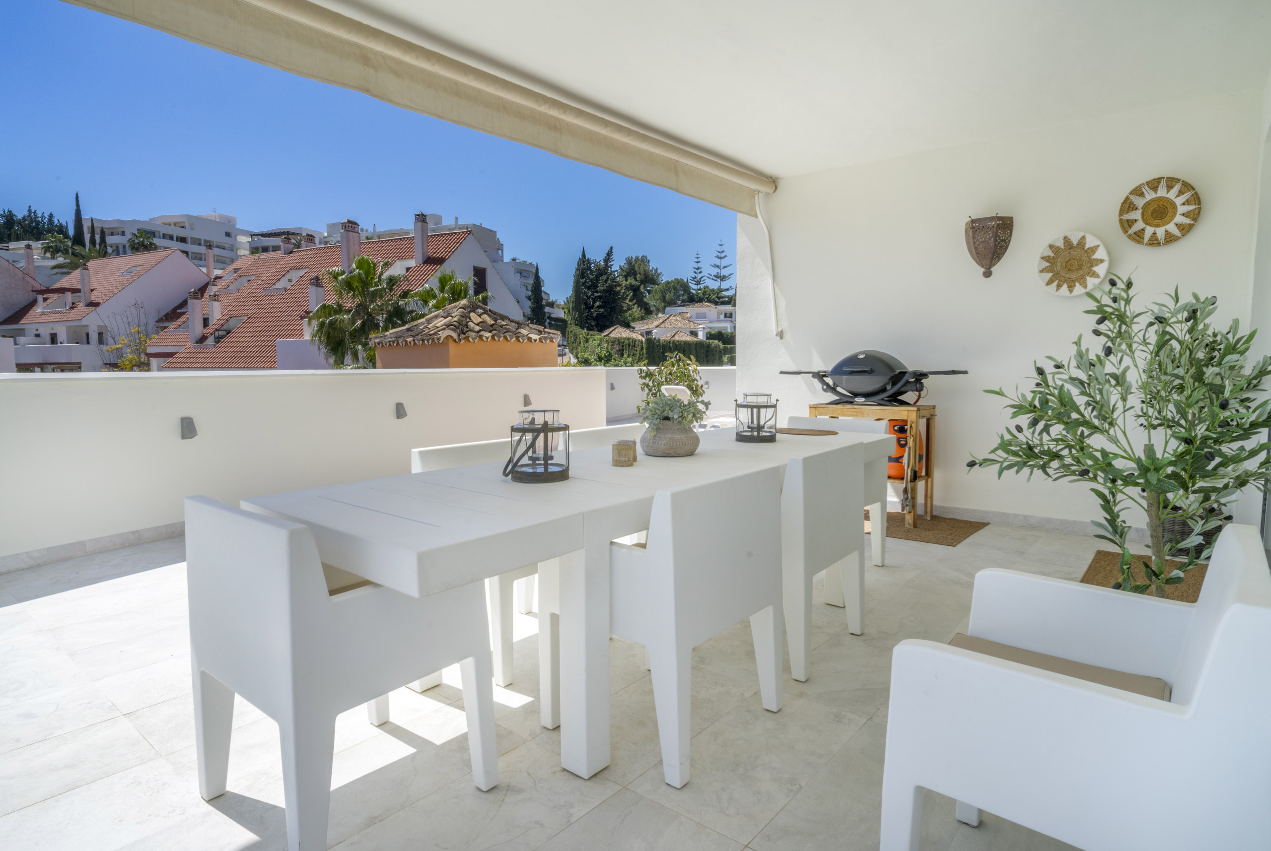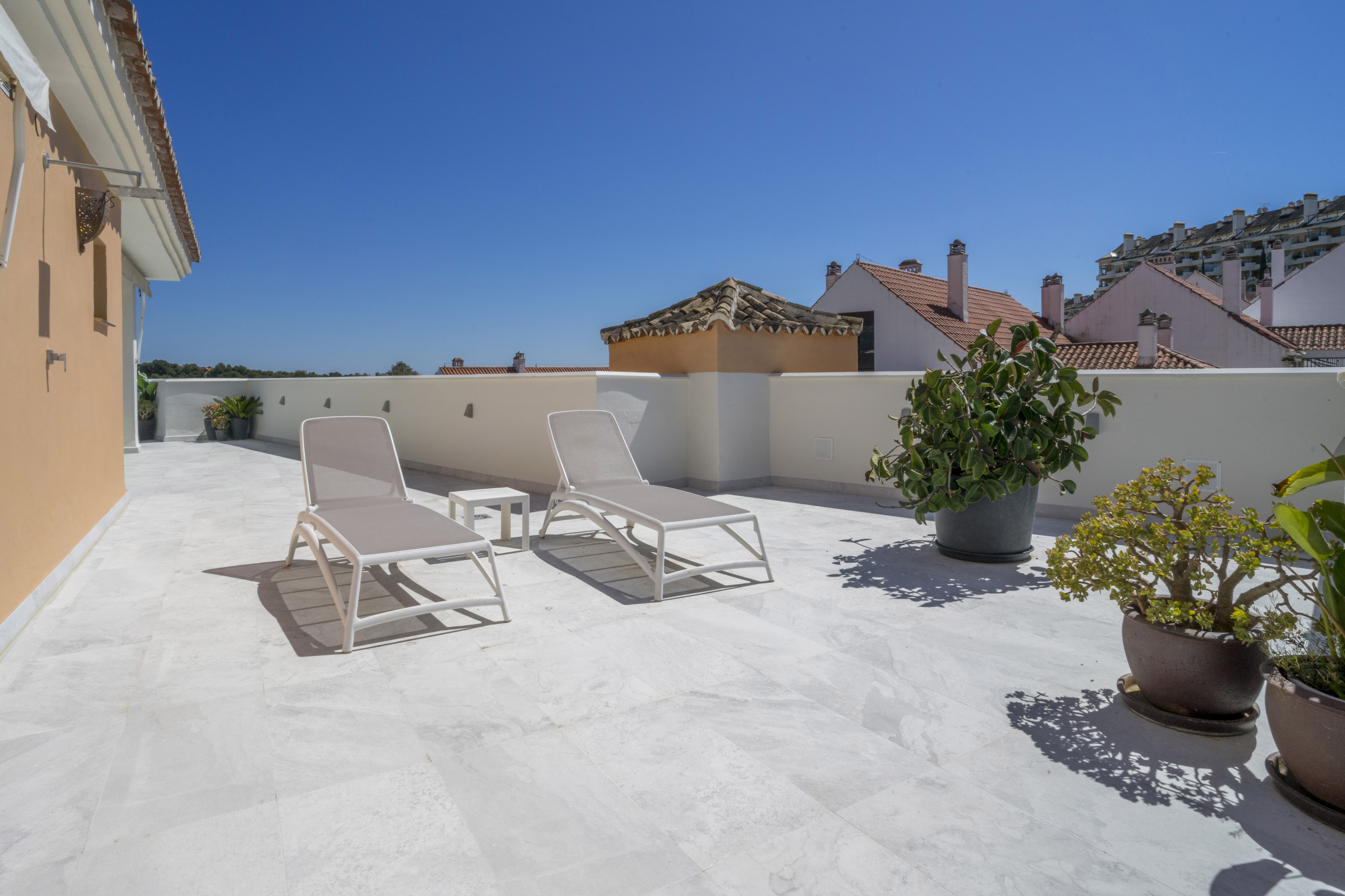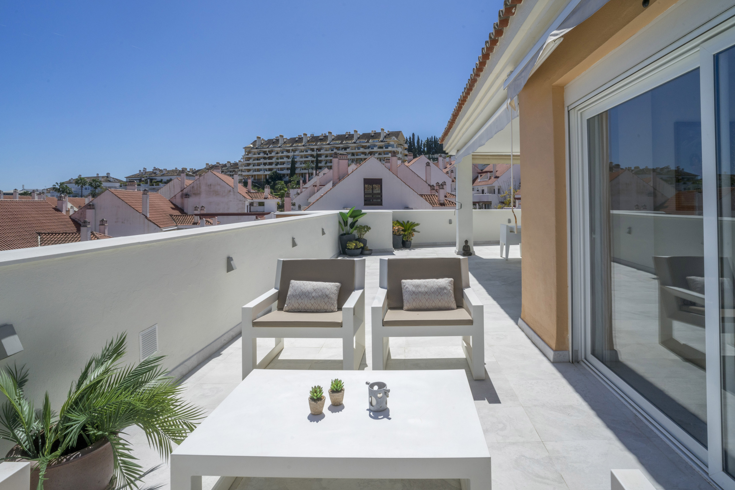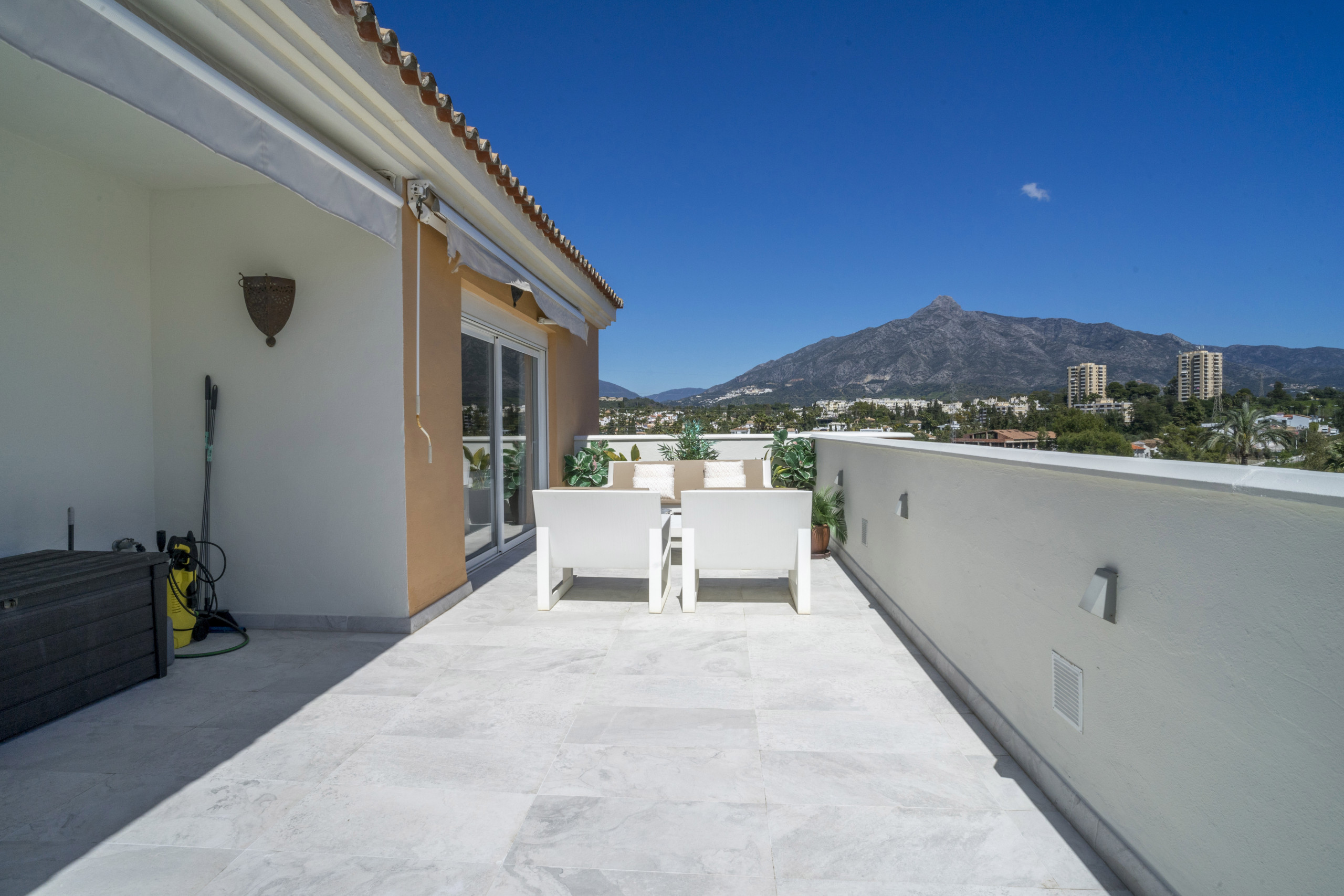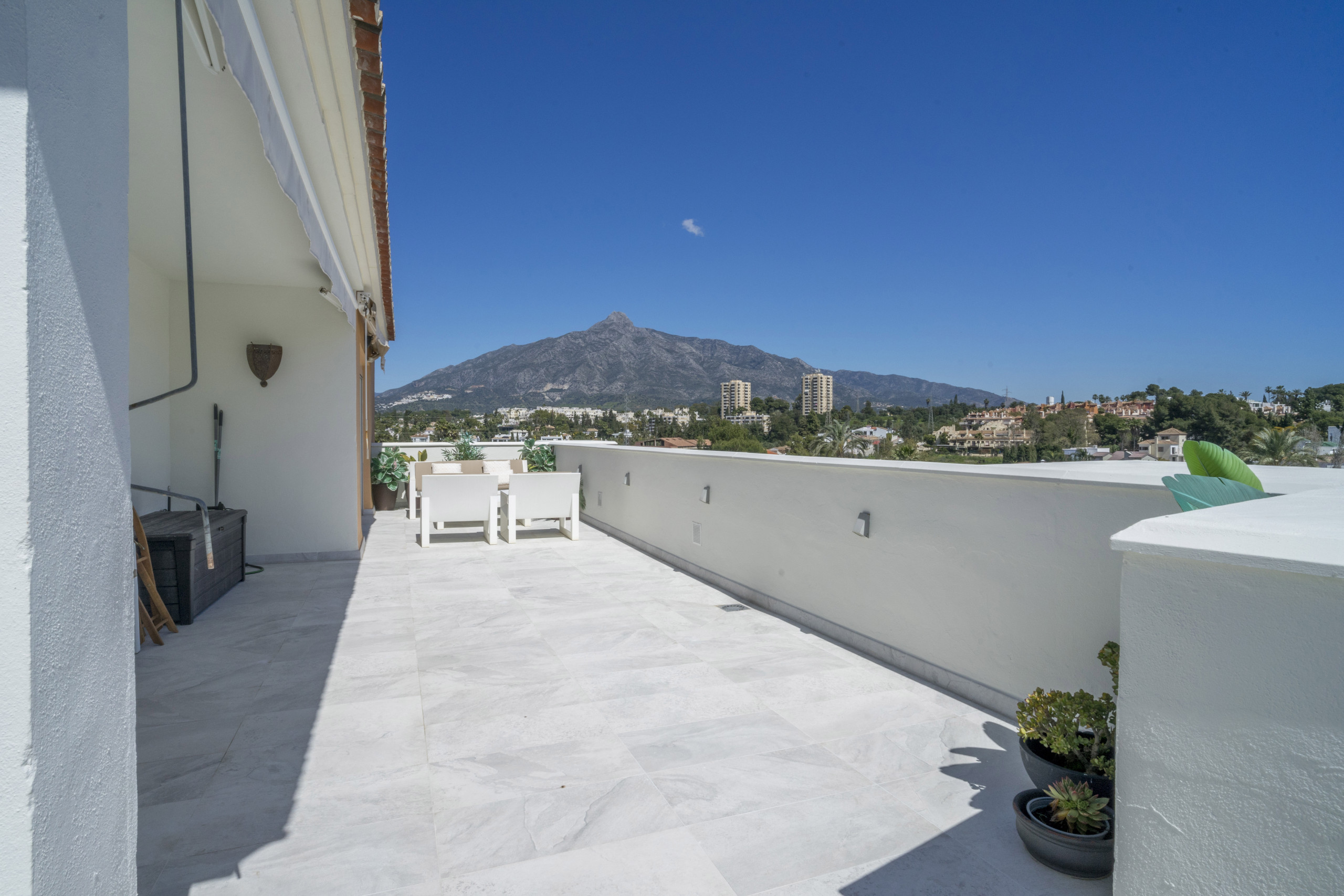 Welcome to this bright penthouse in the Señorio de Aloha, a perfect base for families, friends, or couples visiting Marbella. Located on the top floor of a secure, well-maintained community, it combines relaxed comfort with stunning views of the Mediterranean and La Concha.