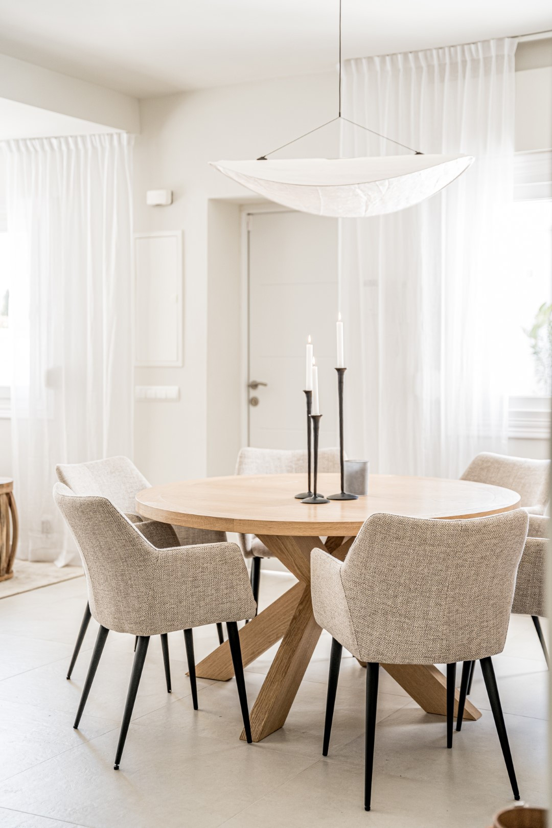 The apartment is arranged over two levels and offers generous living space throughout. On the entrance level, an open-plan layout seamlessly connects the dining and living area with a fully fitted modern kitchen, creating a bright and sociable environment. From the living room, sliding doors open directly onto a private terrace with a cozy sofa area—perfect for morning coffee or evening drinks. From the terrace, a few steps lead down to a private garden of approximately 30 sqm. This outdoor space is ideal for relaxing, sunbathing, or spending quality time with family and friends in complete privacy. The kitchen opens onto a second terrace featuring a dining table and barbecue, perfect for alfresco meals. This level also includes a master bedroom with en-suite bathroom, a guest bedroom, and a separate guest toilet, providing both comfort and privacy.