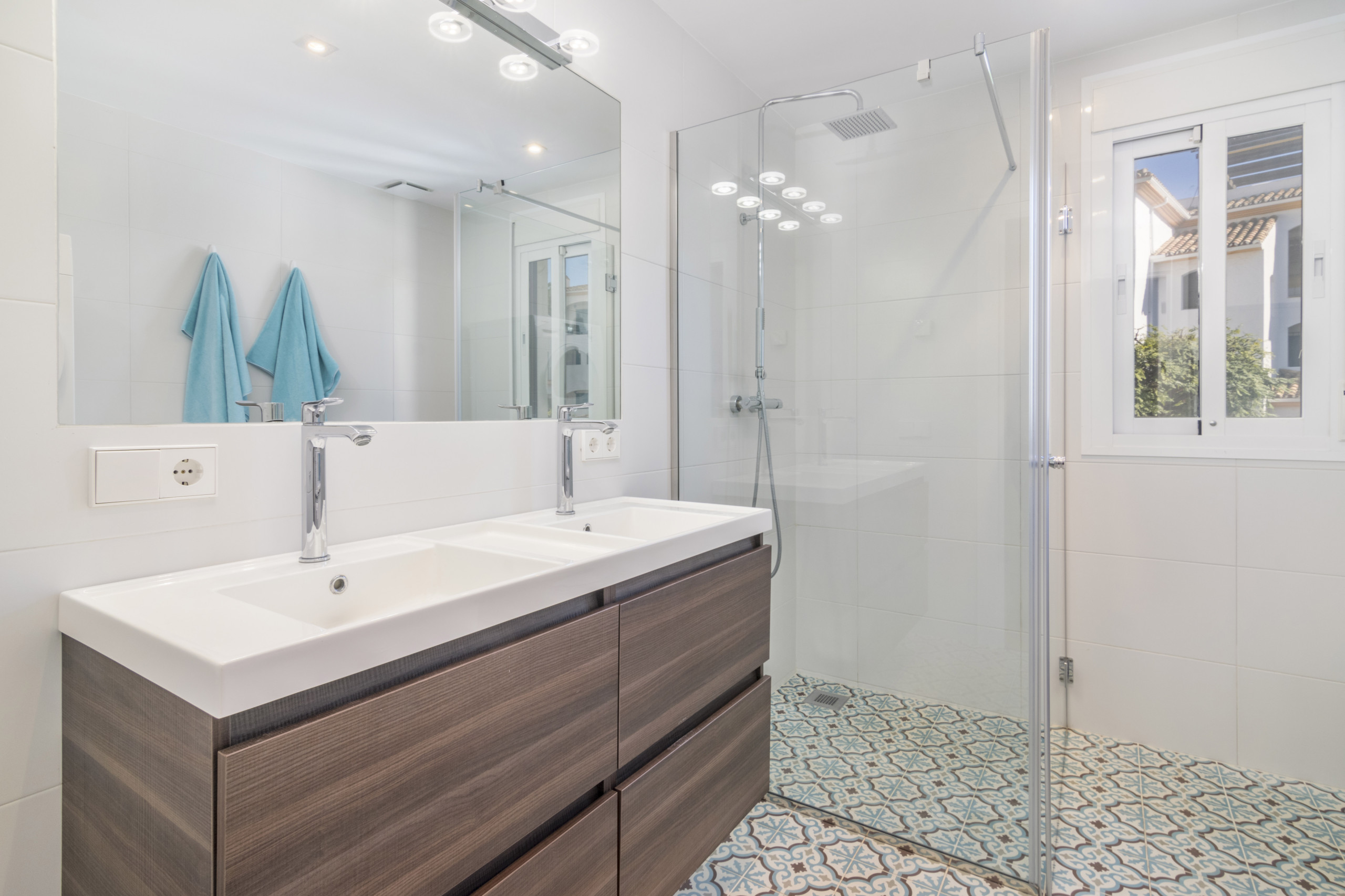 The living area has wide bifold doors creating seamless indoor-outdoor living . The terrace is simply amazing, offering both covered and open areas to relax and enjoy the sun. Enjoy long summer evenings with a BBQ, dine al fresco, or lounge on the outdoor sofa and day bed while soaking up the Mediterranean lifestyle.