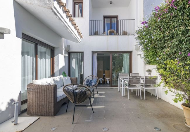 Let us introduce you to this gem of a property available for holiday rentals in Aldea Blanca, Nueva Andalucía. This is one of the most in demand areas for short term rentals as it offers an unbeatable location with walking distance to everything you could need on your holiday. What is so unique about this unit is that it is a townhouse which is very rare to find as there are not many in this community. Stay here if you are looking for a restful holiday base in the Nueva Andalucía, Marbella area that ticks all the practical boxes – spacious accommodation for up to 6 people, access to several community swimming pools and walking distance to all amenities.