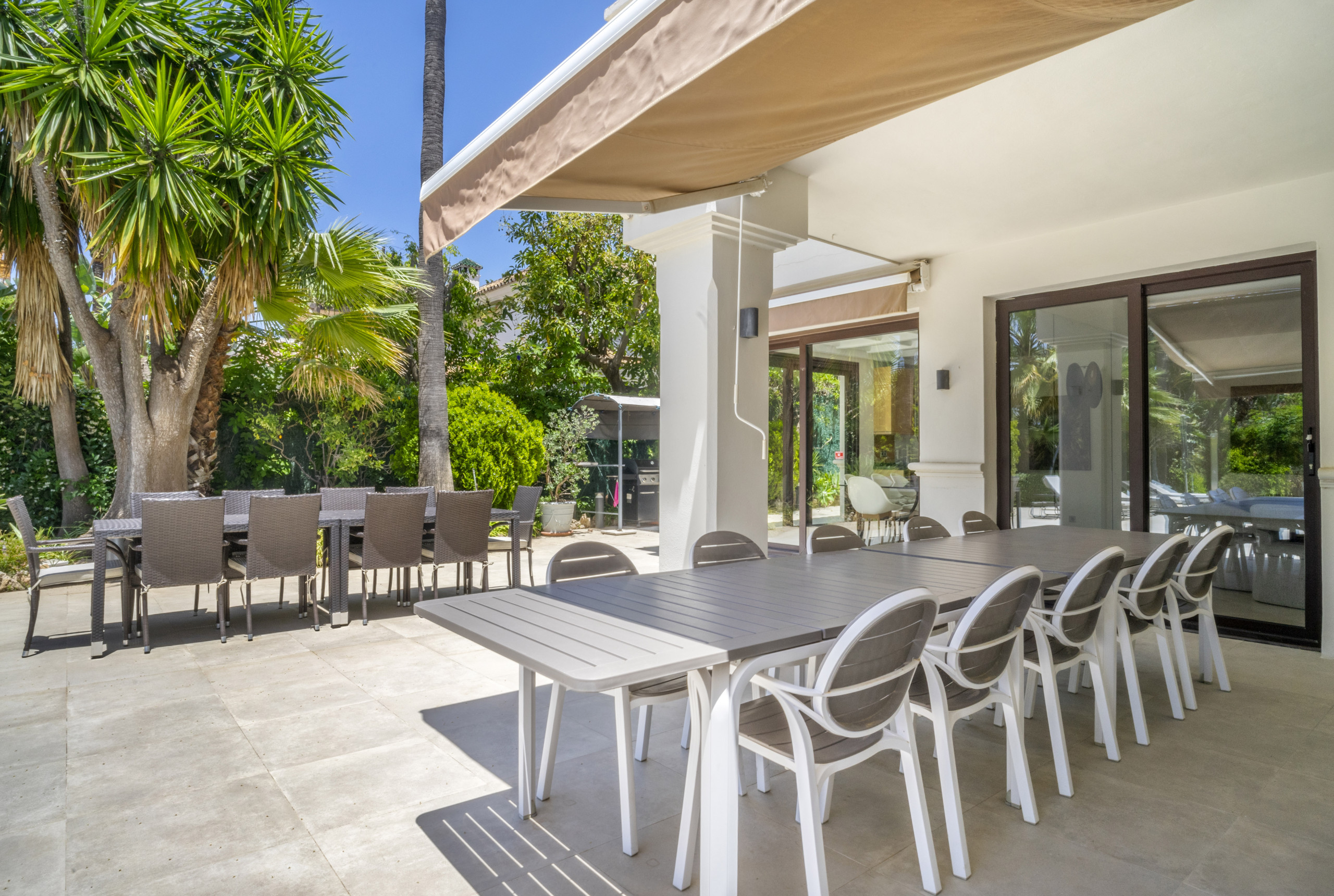 A fantastic family rental villa located in a privileged location close to Los Naranjos Golf Club. Therefore, if you are a golf lover, you cannot be in a better position. Just around the corner you have Los Naranjos Golf Club with a popular clubhouse and restaurant. A true golfing gem in the Nueva Andalucía area! A perfect place to walk to and have breakfast in the morning enjoying the nice golf views. Within a short drive you can reach all the amenities you could need during your holiday. This includes restaurants, shopping, supermarkets, beaches, gyms and much more. The perfect location in Nueva Andalucía to be close to amenities whilst still tucked away to enjoy some tranquillity.
