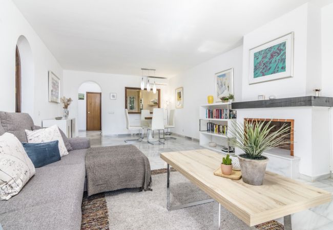 Lägenhet med 2 sovrum uthyres, belägen bredvid Centro Plaza. Gated säker utveckling med vackra välskötta gemensamma trädgårdar, pool och tennisbana. Bara en kort promenad till Puerto Banus, stranden och alla bekvämligheter.