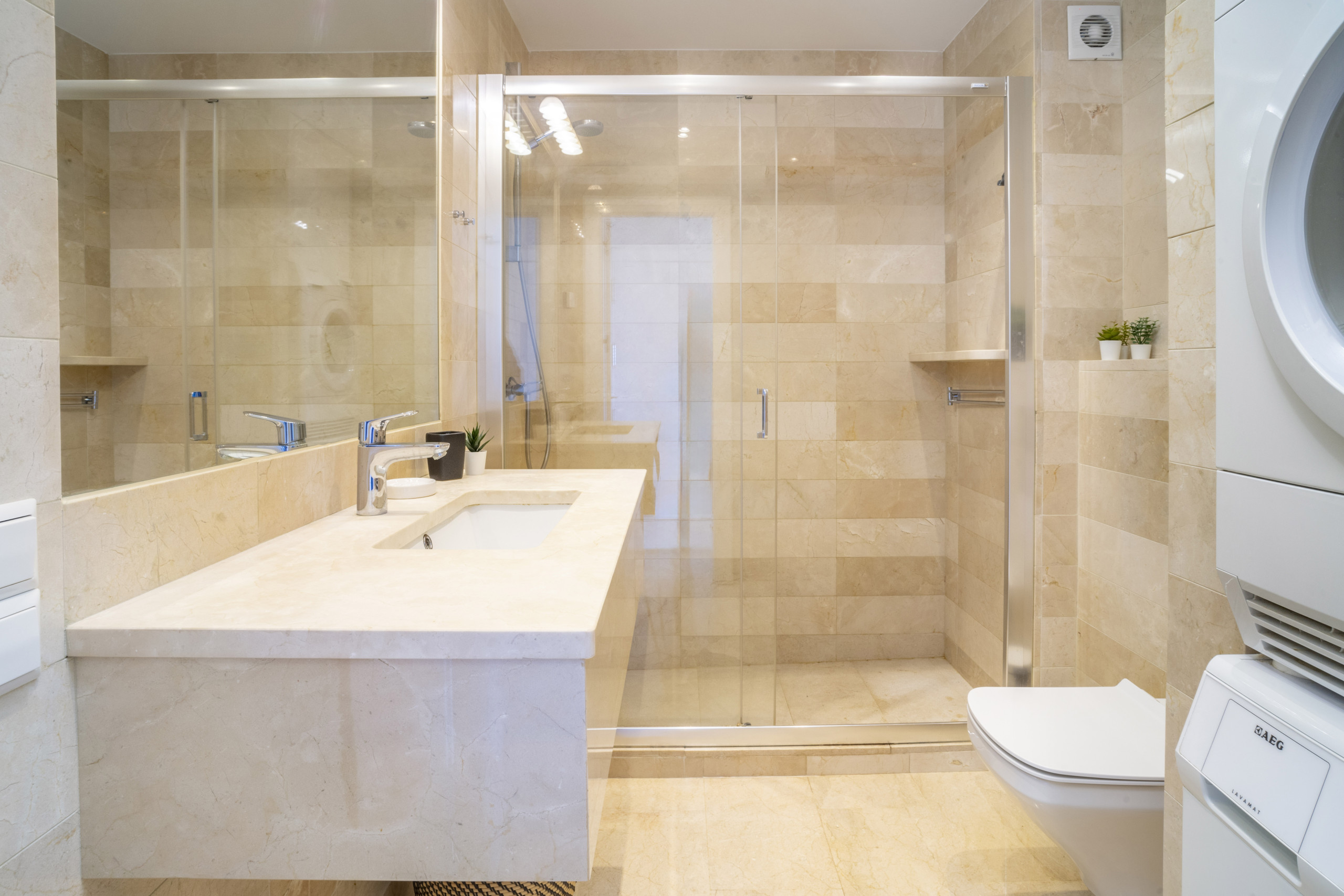 Master-sovrummet har ett eget badrum och är bekvämt beläget intill vardagsrummet. Ett andra dubbelrum med dubbelsängar finns nära ingången, tillsammans med ett andra badrum som inkluderar tvättmaskin och torktumlare.