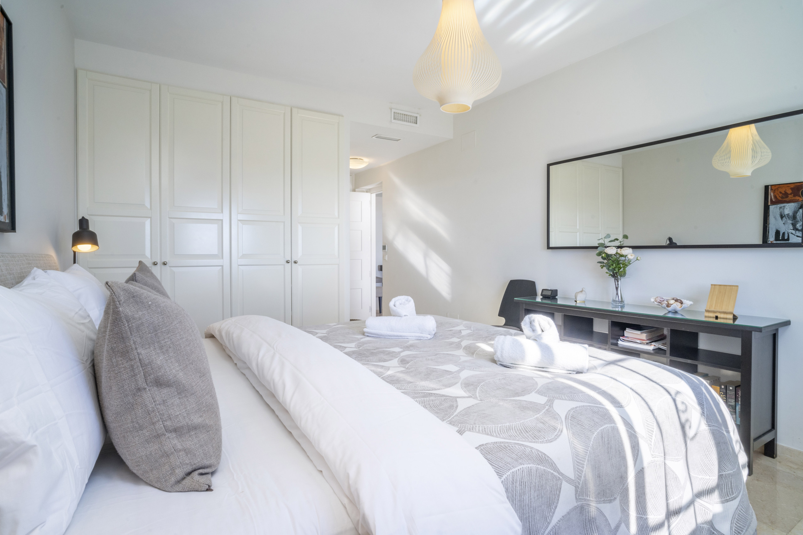 Lägenhet med 2 sovrum för semesteruthyrning i Aloha Gardens, ett gated community med 24-timmars bevakning. I området finns vackra gemensamma trädgårdar och 3 pooler, varav en är uppvärmd. Lägenheten är totalrenoverad och innehåller ett uppdaterat kök, två sovrum i bra storlek, 1 badrum med hydromassage och ett bekvämt vardagsrum med utgång till terrassen. Fantastisk lägenhet på ett utmärkt läge. Fastigheten har spanska TV-kanaler och även Apple TV-system där även Netflix kan användas.