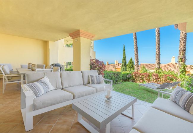 Nordiskt inredd lägenhet på bottenvåningen med 2 sovrum i västerläge i Cumbres del Rodeo, Nueva Andalucia. Inom 10 minuters promenad till Puerto Banus och omgivande stränder.