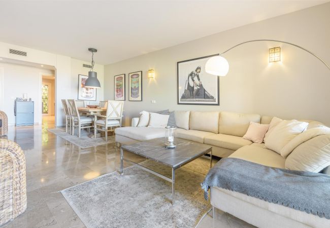 Lägenhet med 2 sovrum för semesteruthyrning i Aloha Gardens, ett gated community med 24-timmars bevakning. I området finns vackra gemensamma trädgårdar och 3 pooler, varav en är uppvärmd. Lägenheten är totalrenoverad och innehåller ett uppdaterat kök, två sovrum i bra storlek, 1 badrum med hydromassage och ett bekvämt vardagsrum med utgång till terrassen. Fantastisk lägenhet på ett utmärkt läge. Fastigheten har spanska TV-kanaler och även Apple TV-system där även Netflix kan användas.