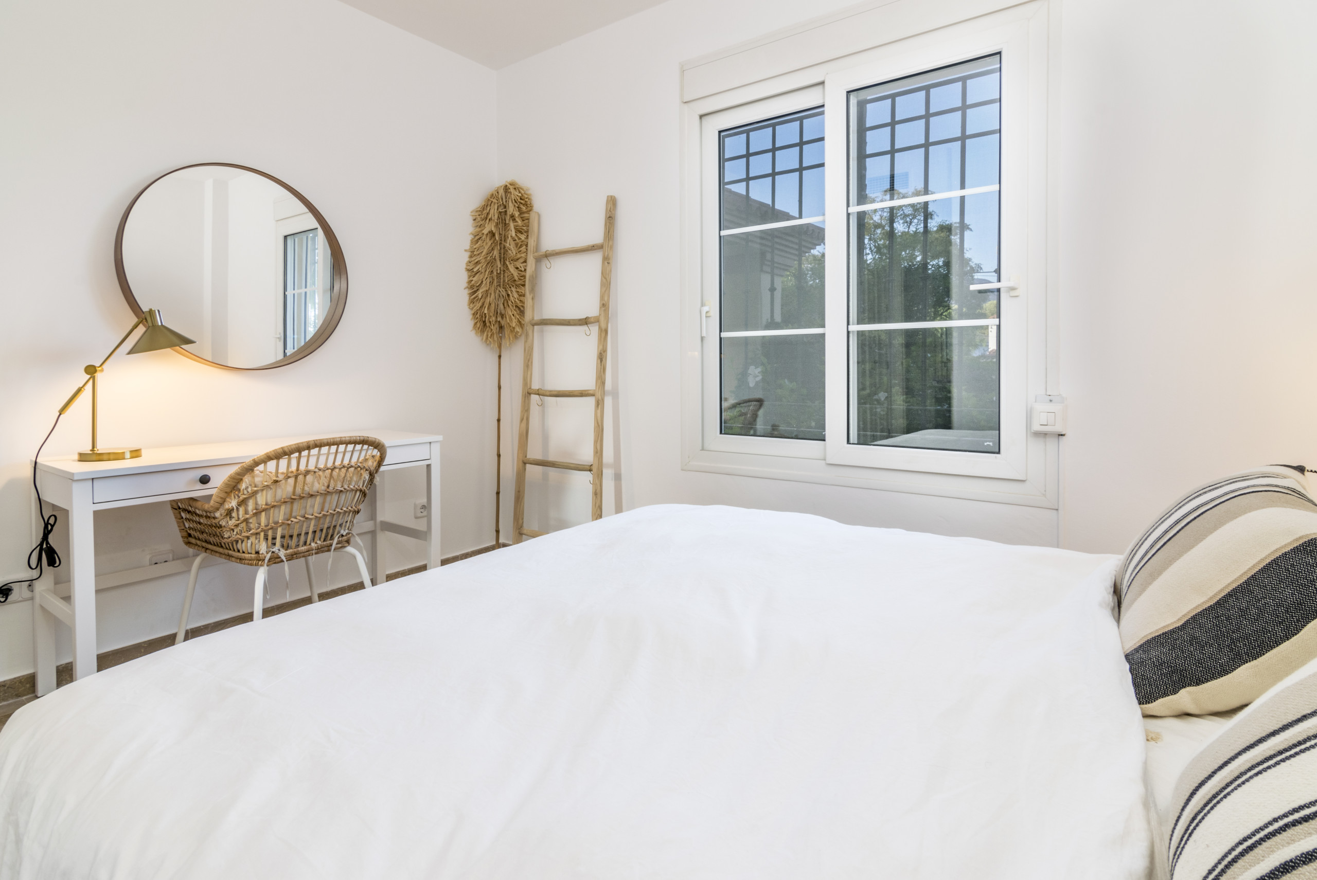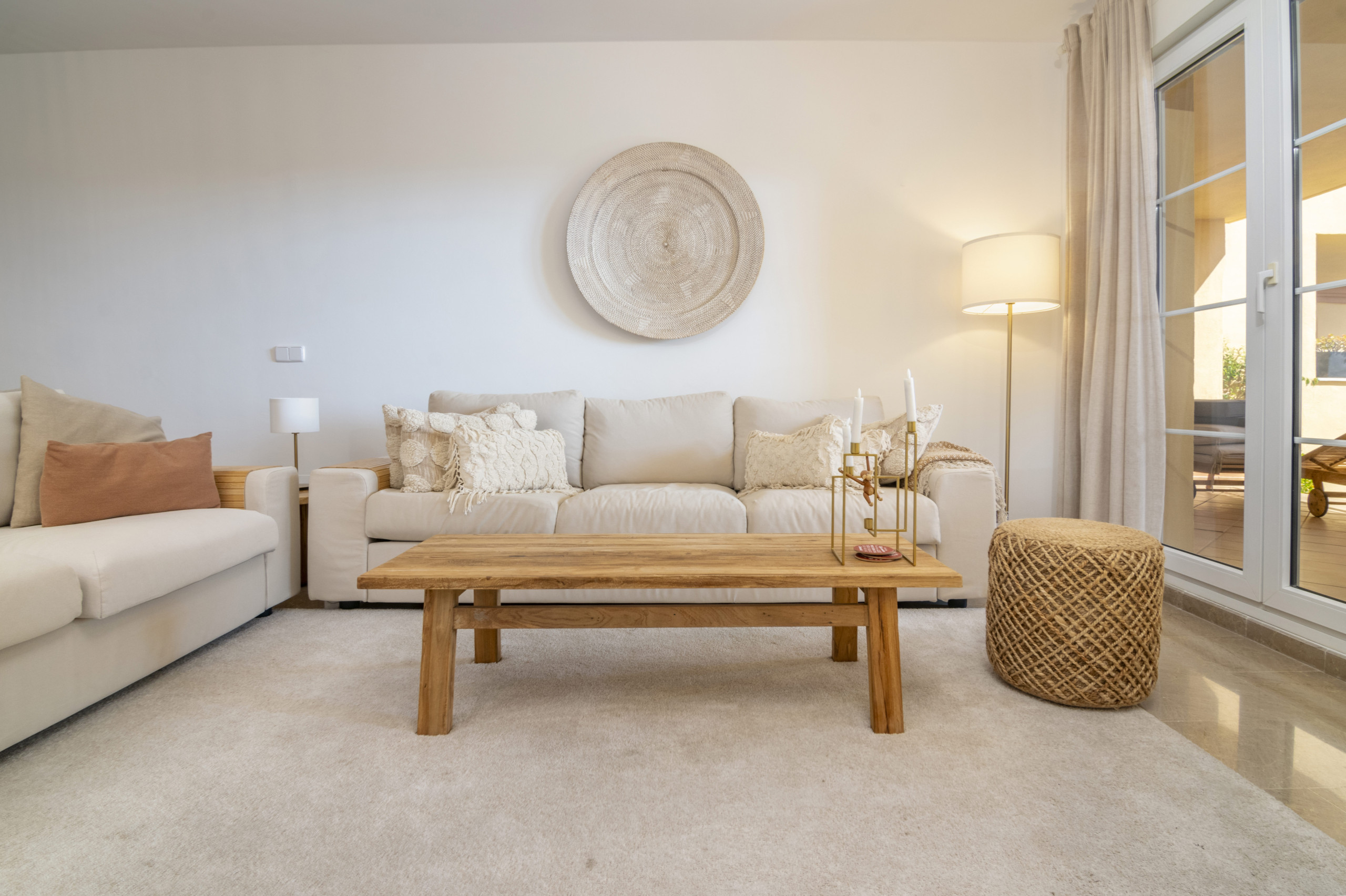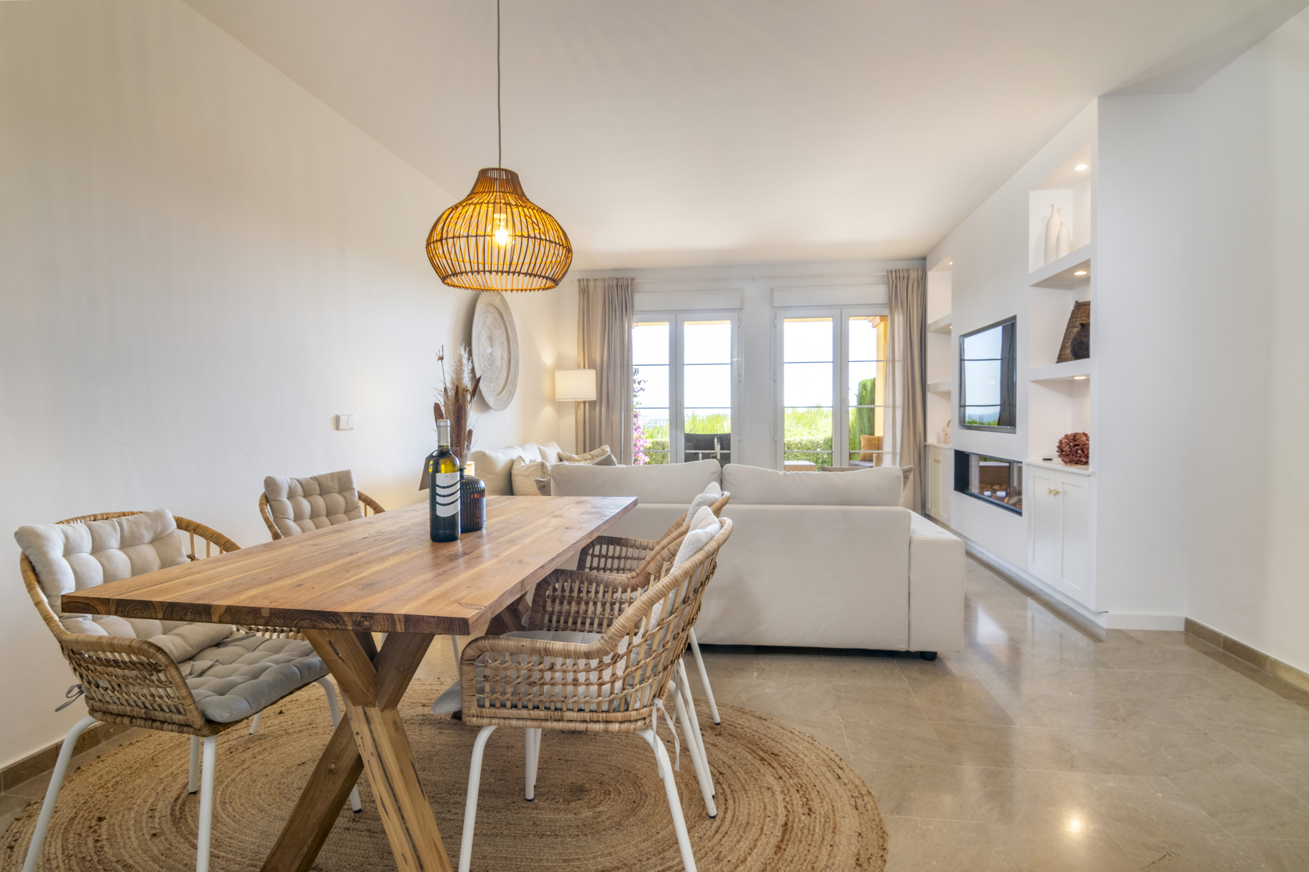 Det här är en fantastisk trädgårdslägenhet med 2 sovrum och 2 badrum. När du kommer in i lägenheten möts du av ett öppet område som består av ett kombinerat vardagsrum och matplats. De stora glasfönstren säkerställer optimalt solljusintag, vilket ger utrymmet en ljus och rymlig känsla. Härifrån finns det direkt tillgång ut till terrassen och den privata trädgården. Tänk dig att koppla av under det täckta terrassutrymmet med en lockande bok eller att slappna av i solskenet i din trädgård! Köket är välskött i traditionell stil och innehåller ett förråd. Dessutom finns det två stora sovrum. Fastigheten på bottenvåningen ligger i ett av de högre kvarteren inom Cumbres del Rodeo, därför erbjuder den panoramautsikt över havet och dalen.