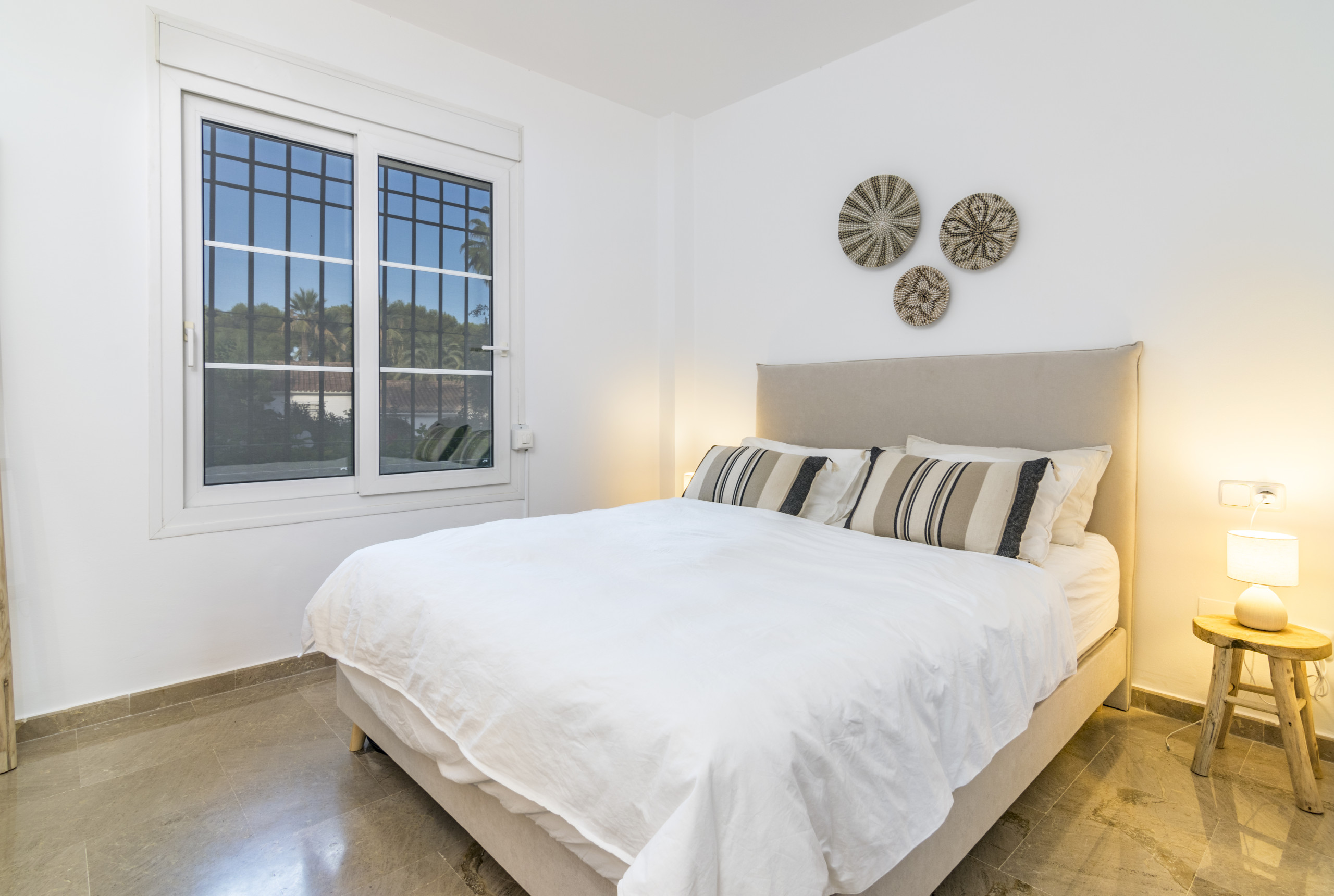 Lägenhet med 2 sovrum för semesteruthyrning i Aloha Gardens, ett gated community med 24-timmars bevakning. I området finns vackra gemensamma trädgårdar och 3 pooler, varav en är uppvärmd. Lägenheten är totalrenoverad och innehåller ett uppdaterat kök, två sovrum i bra storlek, 1 badrum med hydromassage och ett bekvämt vardagsrum med utgång till terrassen. Fantastisk lägenhet på ett utmärkt läge. Fastigheten har spanska TV-kanaler och även Apple TV-system där även Netflix kan användas.