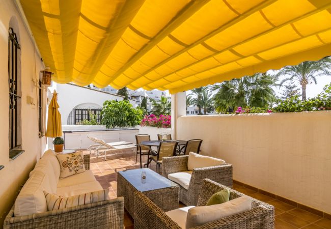 Lägenhet med 2 sovrum för semesteruthyrning i Aloha Gardens, ett gated community med 24-timmars bevakning. I området finns vackra gemensamma trädgårdar och 3 pooler, varav en är uppvärmd. Lägenheten är totalrenoverad och innehåller ett uppdaterat kök, två sovrum i bra storlek, 1 badrum med hydromassage och ett bekvämt vardagsrum med utgång till terrassen. Fantastisk lägenhet på ett utmärkt läge. Fastigheten har spanska TV-kanaler och även Apple TV-system där även Netflix kan användas.