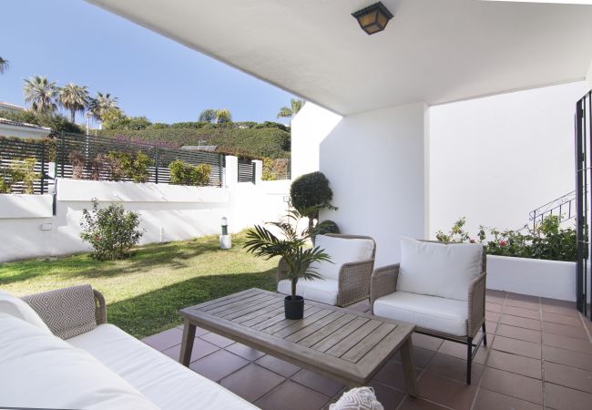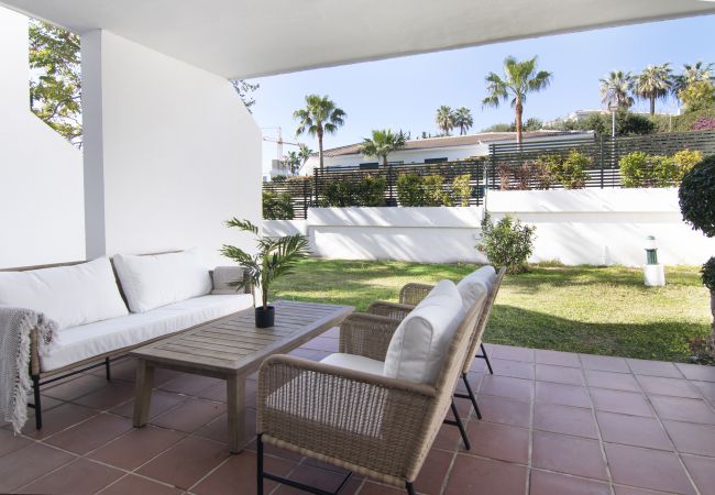 Den här lägenheten är den ultimata semesterbasen tack vare den eleganta stilen, bekvämligheten på bottenvåningen och det oslagbara läget. Läget är helt enkelt perfekt! Tänk dig att ta några steg och kunna titta in för en bit mat på italienaren, eller vakna upp och njuta av din frukost i den närliggande hälsosamma brunchplatsen i staden Dezentral. Du har inte bara gångavstånd till några restauranger och kaféer utan du har också en kort promenad till Centro Plaza och Puerto Banus.