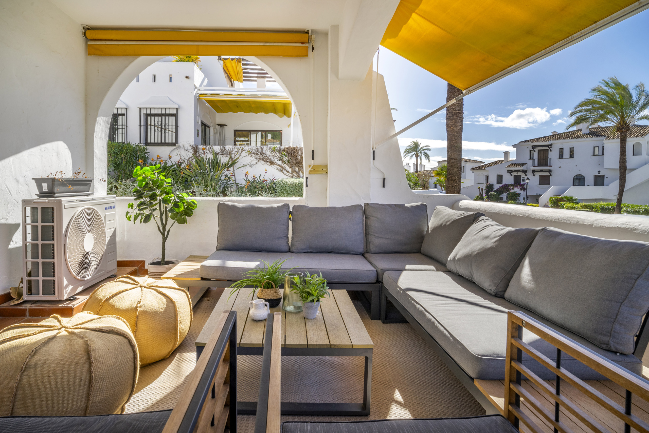 Lägenhet med 2 sovrum för semesteruthyrning i Aloha Gardens, ett gated community med 24-timmars bevakning. I området finns vackra gemensamma trädgårdar och 3 pooler, varav en är uppvärmd. Lägenheten är totalrenoverad och innehåller ett uppdaterat kök, två sovrum i bra storlek, 1 badrum med hydromassage och ett bekvämt vardagsrum med utgång till terrassen. Fantastisk lägenhet på ett utmärkt läge. Fastigheten har spanska TV-kanaler och även Apple TV-system där även Netflix kan användas.