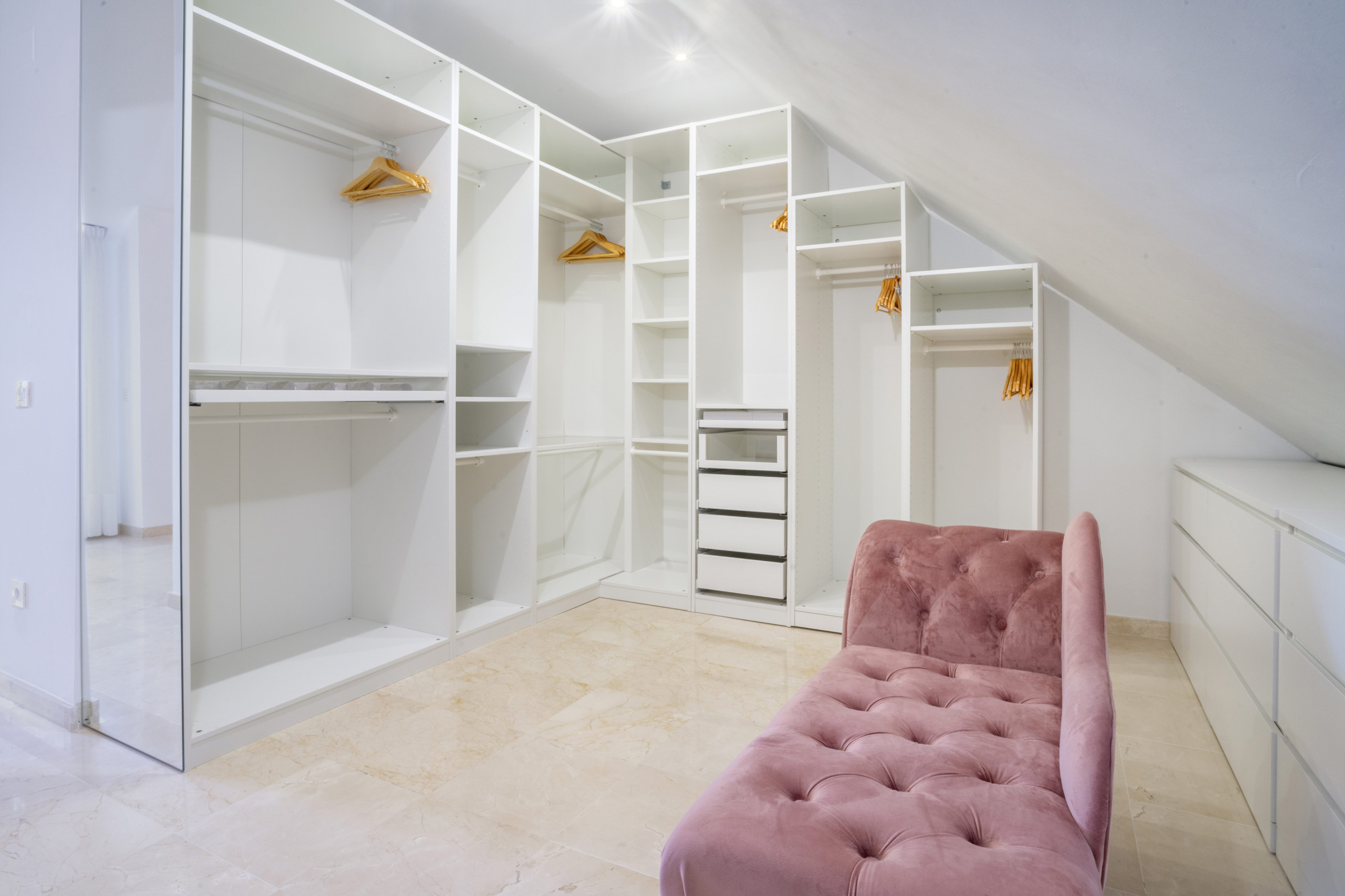 Planlösningen i denna takvåning är genomtänkt designad för att maximera både privatliv och vardagskomfort. Den privata master-sviten är belägen på övervåningen och erbjuder en idealisk fristad. Den har en stor walk-in-garderob med gott om förvaringsutrymme och en privat terrass där du kan koppla av och njuta av delvis havsutsikt.