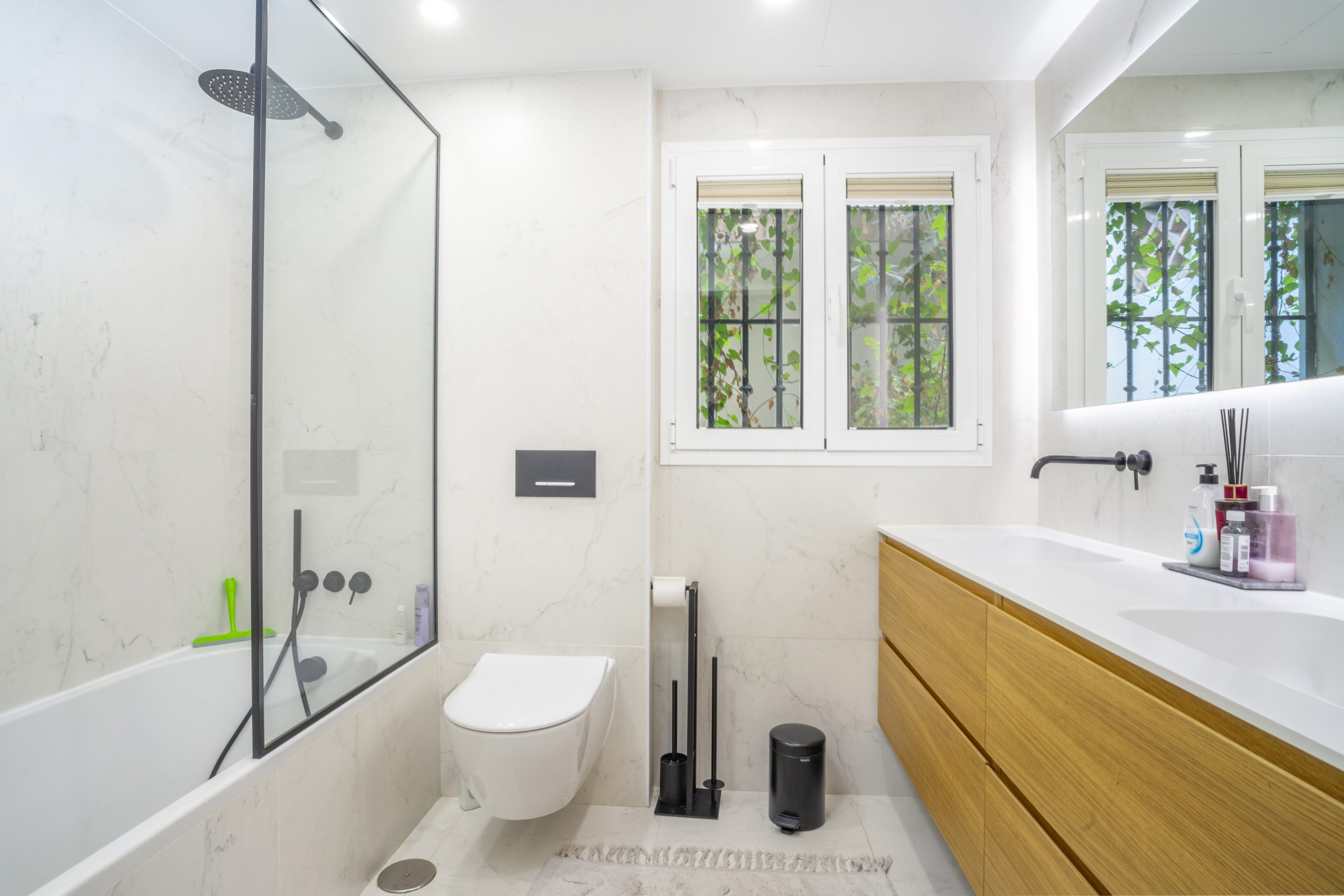 Lägenheten har två rymliga sovrum, två moderna badrum och en bekväm bäddsoffa som kan husera upp till sex gäster. Nyligen renoverad med ny möblering, sängar och inredning känns den fräsch och modern samtidigt som den bibehåller en varm, hemtrevlig atmosfär. Med luftkonditionering i varje rum och höghastighets-WiFi är det enkelt att arbeta, koppla av eller streama under din vistelse.