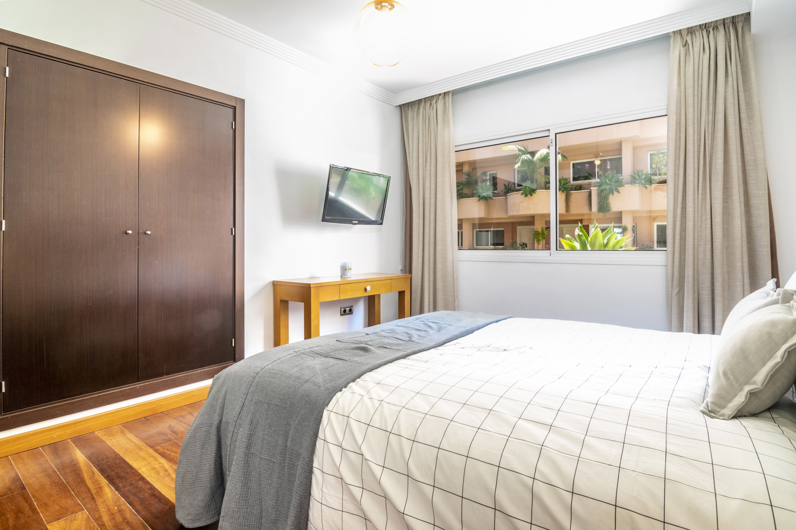 Letar du efter en rymlig lägenhet att hyra? Är du en stor familj och behöver 4 sovrum? Låt oss presentera dig för denna lägenhet med 4 sovrum i Magna Marbella. Det är en verkligt unik fastighet eftersom det är två lägenheter som är sammanfogade vilket ger en stor och rymlig känsla i hela huset. Det är inte förvånande att Magna Marbella är så populärt för semesterfirare på grund av det centrala läget nära allt du kan behöva. Magna Marbella har till exempel en egen restaurang och en 9-håls golfbana. Detta innebär att du inte behöver lämna bekvämligheten i urbaniseringen för att ta en bit mat eller slå några bollar. Inte bara har komplexet en golfbana utan i närheten har du flera av de mest kända golfbanorna i området - Los Naranjos Golf Club ligger inom gångavstånd!