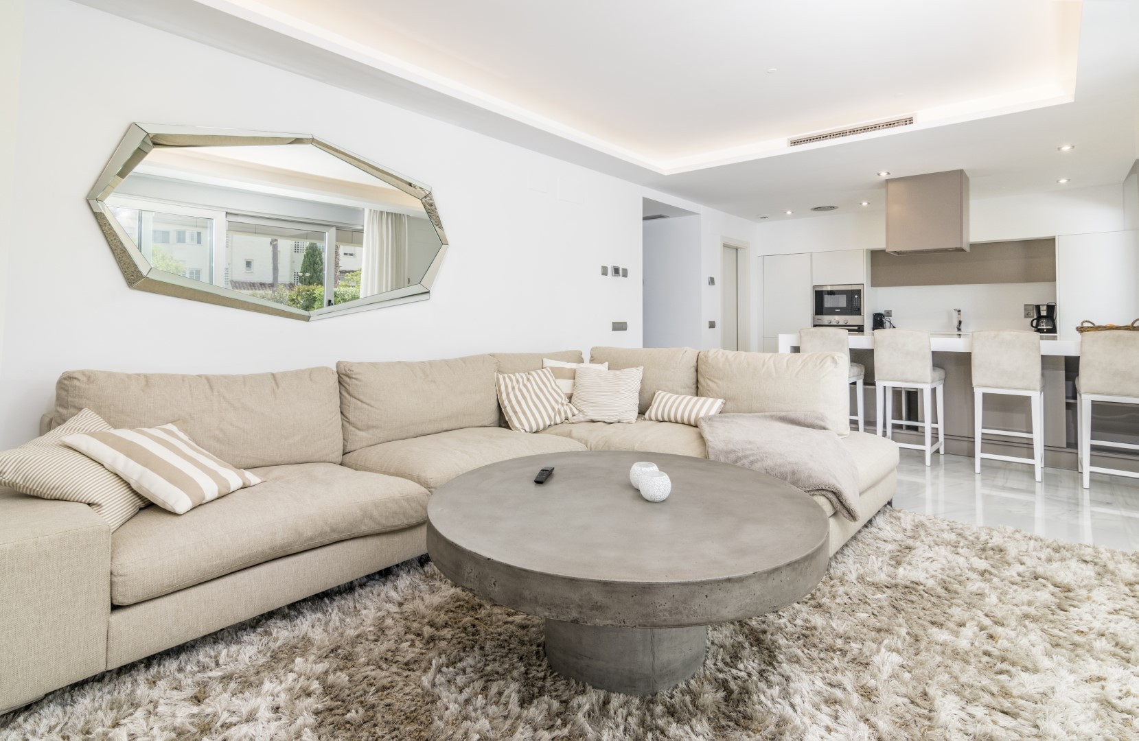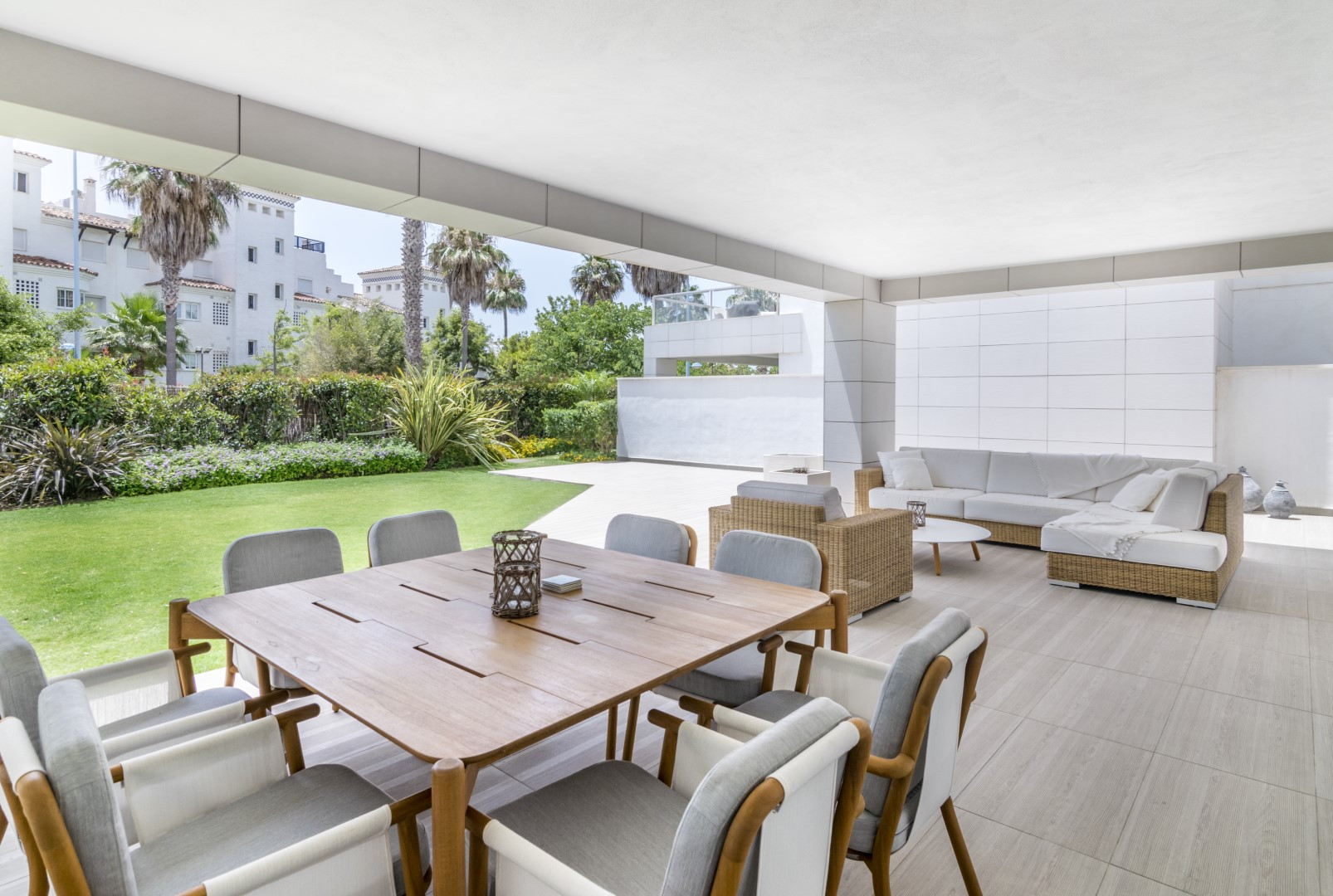 Vi presenterar denna moderna lägenhet på bottenvåningen som kan hyras vid San Pedro Beachside. Ett underbart läge där du kan gå till bekvämligheter, inklusive stranden där du kan njuta av en härlig lunch på en chiringuito.