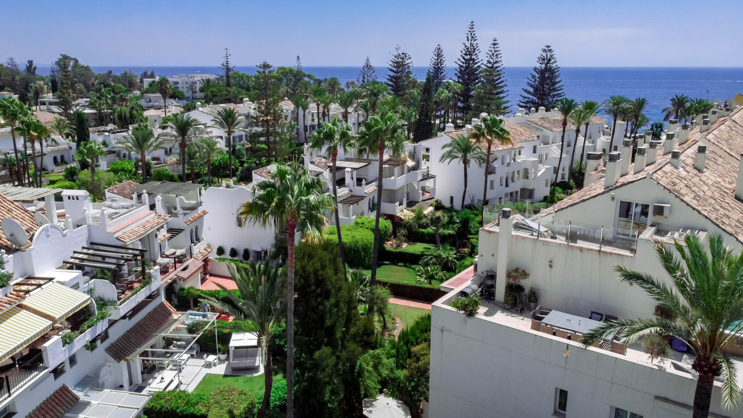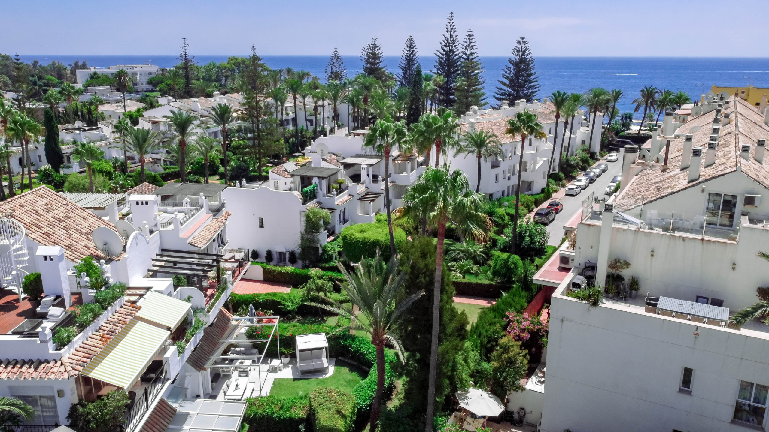 Radhuset ligger i en trevlig urbanisering med flera pooler, stora trädgårdsområden och avkopplingsplatser, så att du kan fullt ut omfamna semesterstämningen.