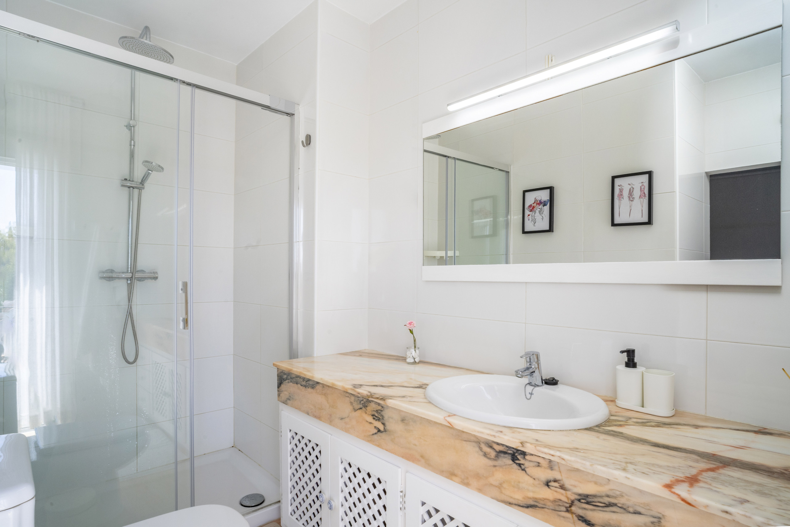 Ovanpå erbjuder fastigheten tre inbjudande sovrum, inklusive en generös master suite, ett flexibelt dubbelrum som kan delas upp i två enkelsängar, och ett barnrum. En höjdpunkt på denna våning är den rymliga terrassen, perfekt för att njuta av Marbellas vackra väder.